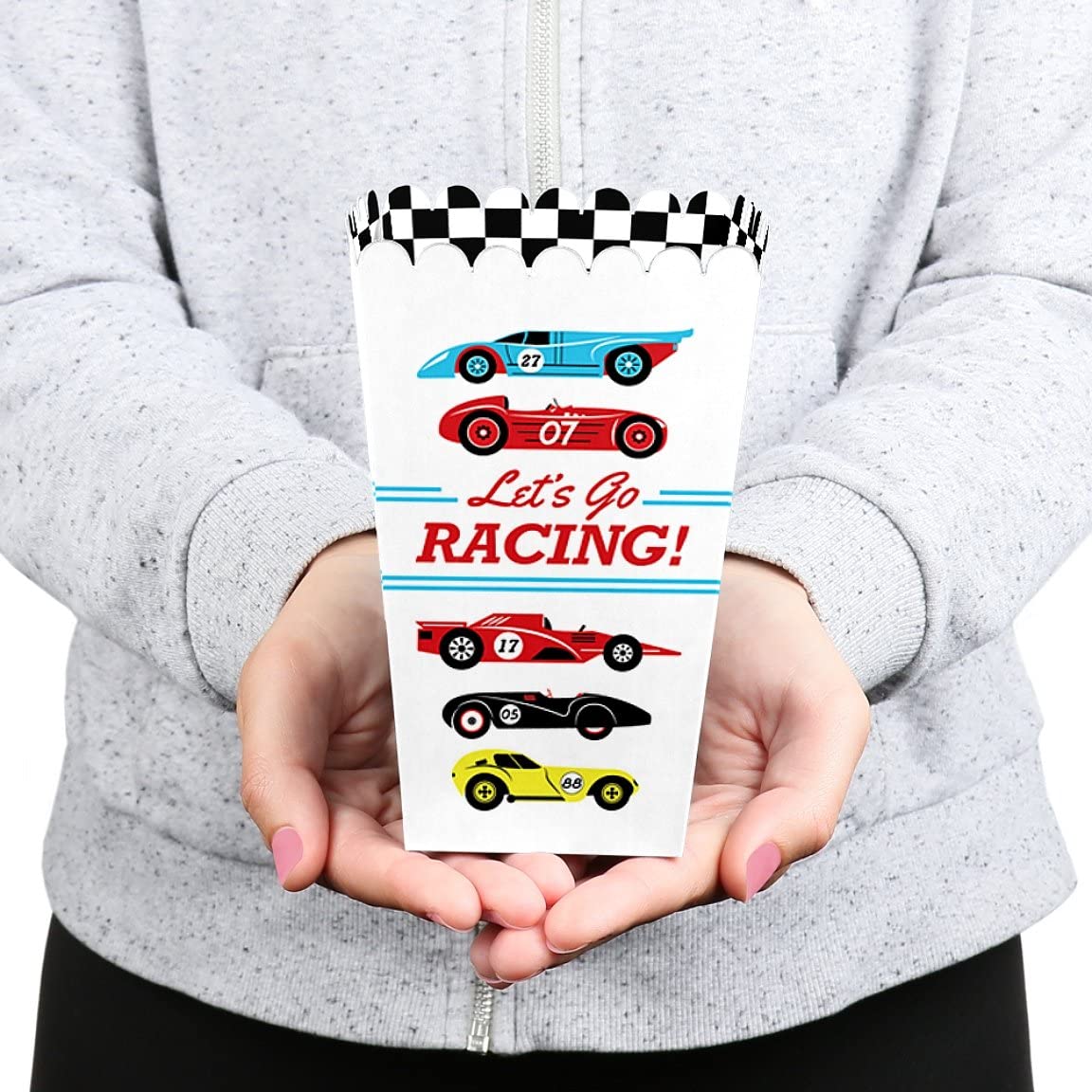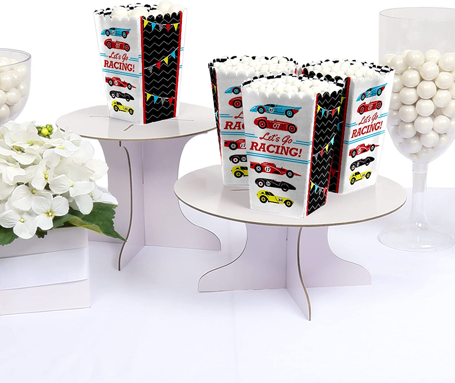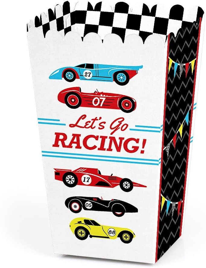 Let’s Go Racing - Racecar - Baby Shower or Race Car Birthday Party Favor Popcorn Treat Boxes - Set of 12 is backordered and will ship as soon as it is back in stock.