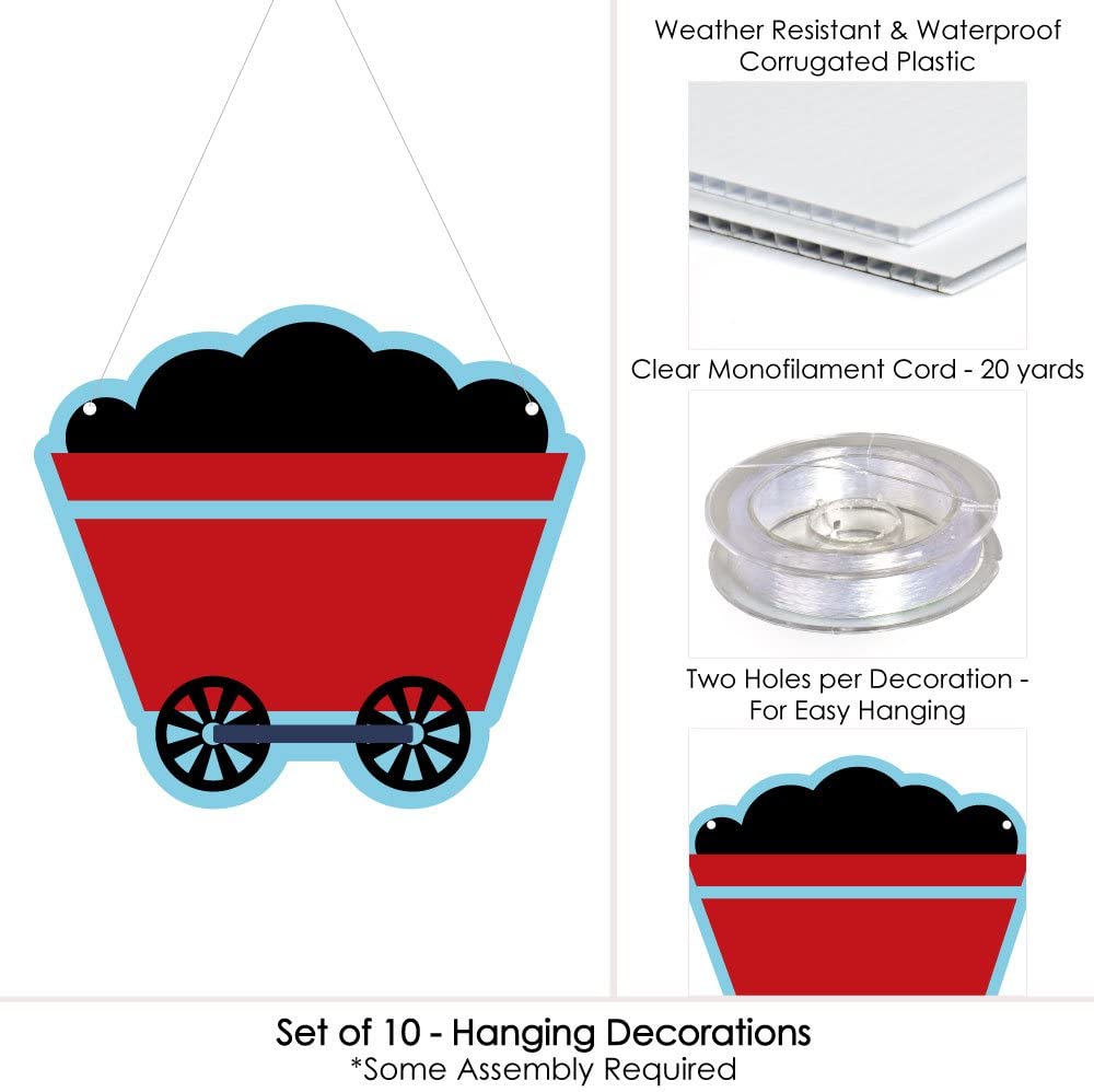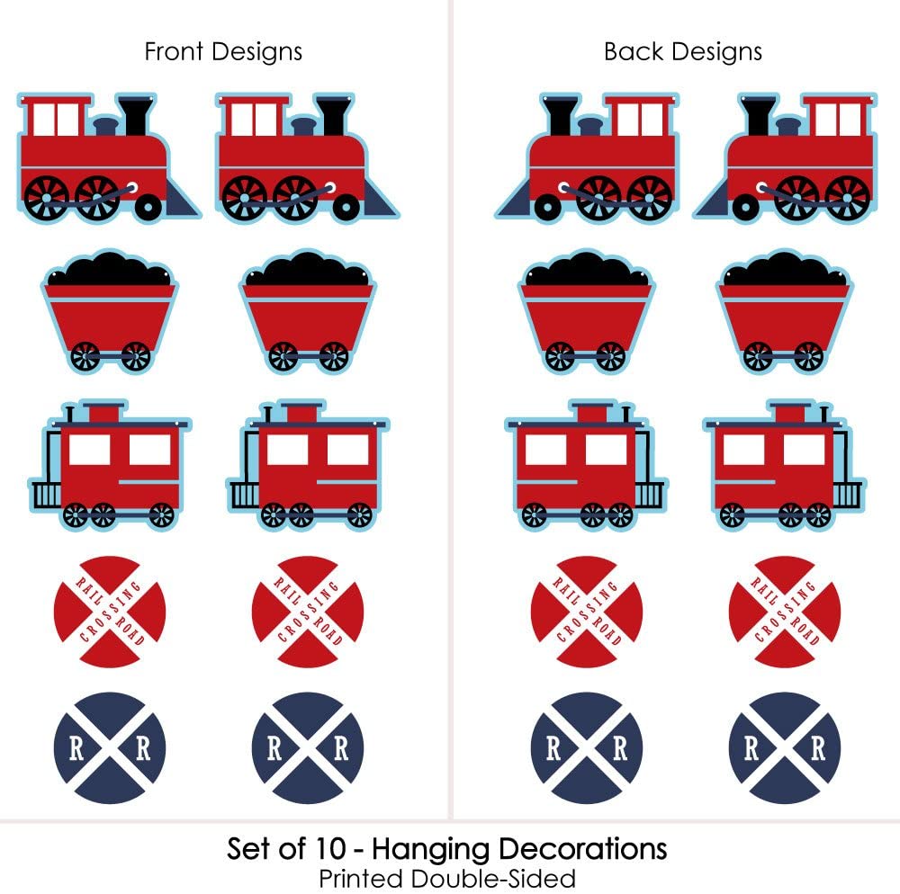 Hanging Railroad Party Crossing - Outdoor Hanging Decor - Steam Train Baby Shower or Birthday Party Decorations - 10 Pieces is backordered and will ship as soon as it is back in stock.