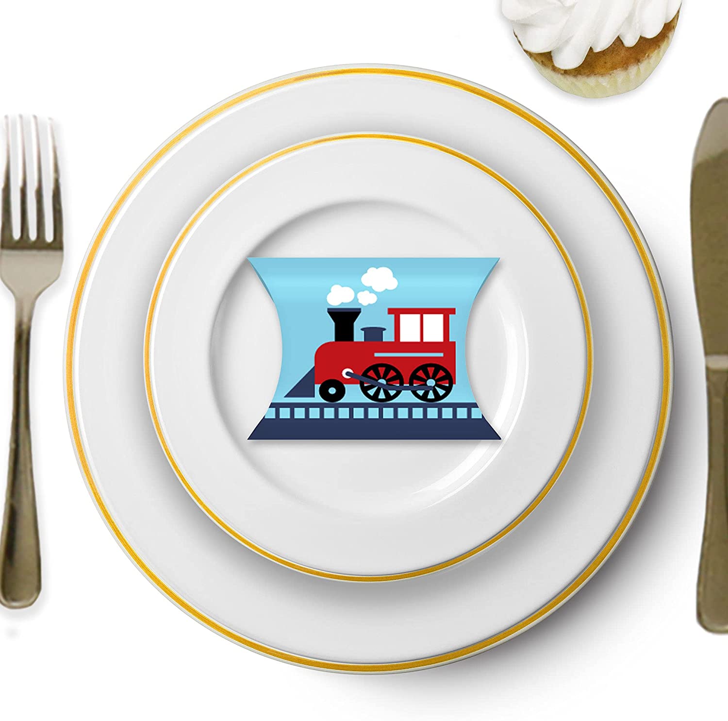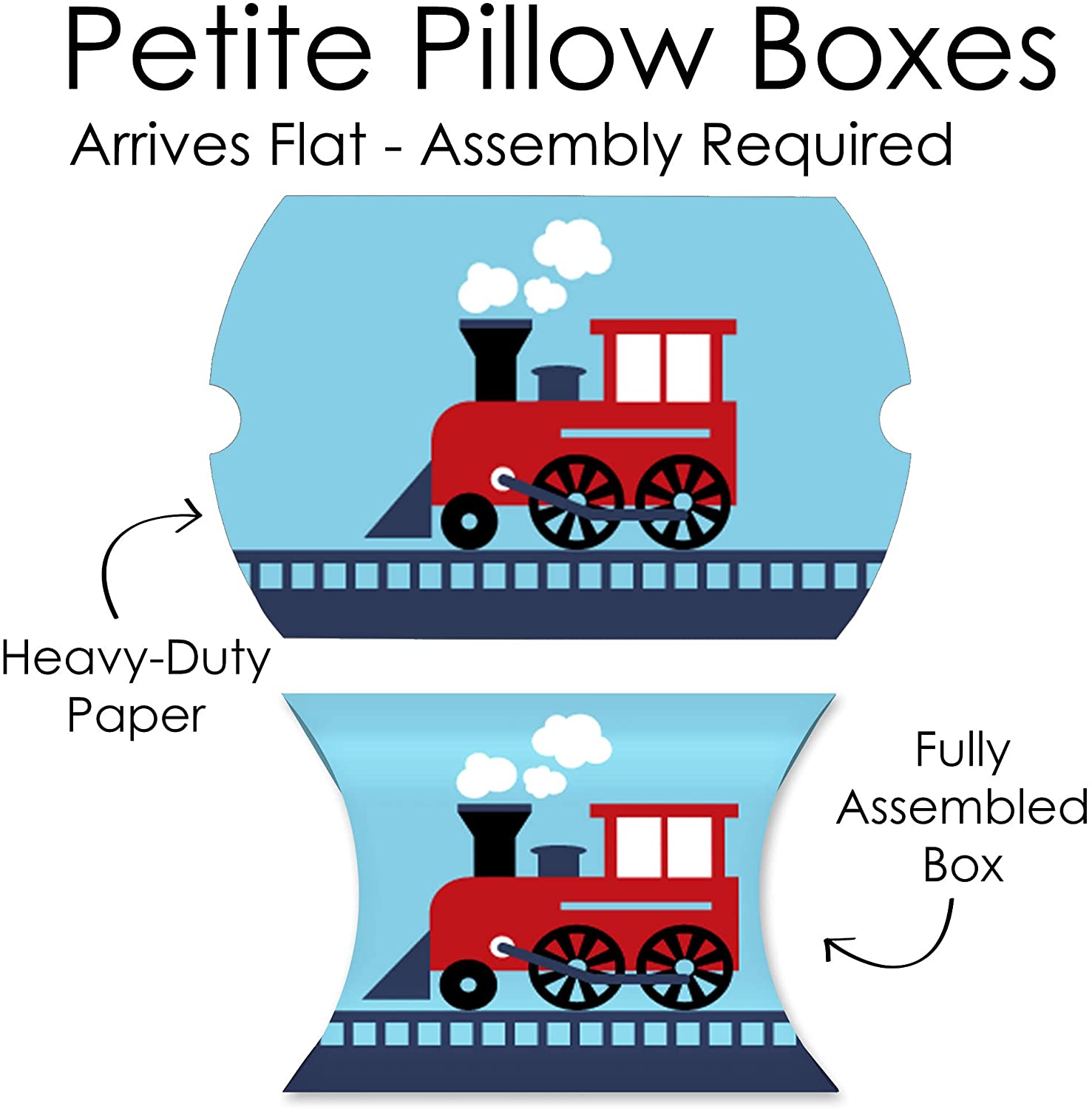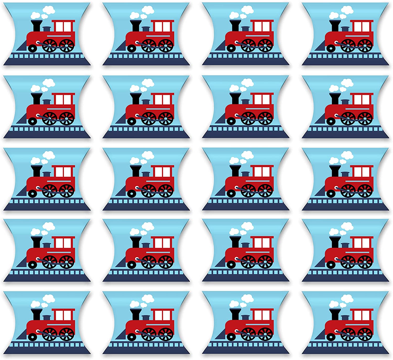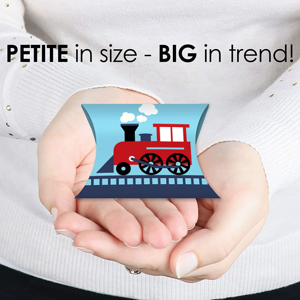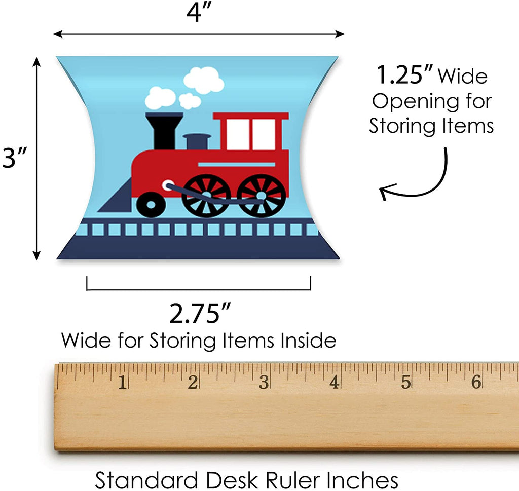Railroad Party Crossing - Favor Gift Boxes - Steam Train Birthday Party or Baby Shower Petite Pillow Boxes - Set of 20 is backordered and will ship as soon as it is back in stock.