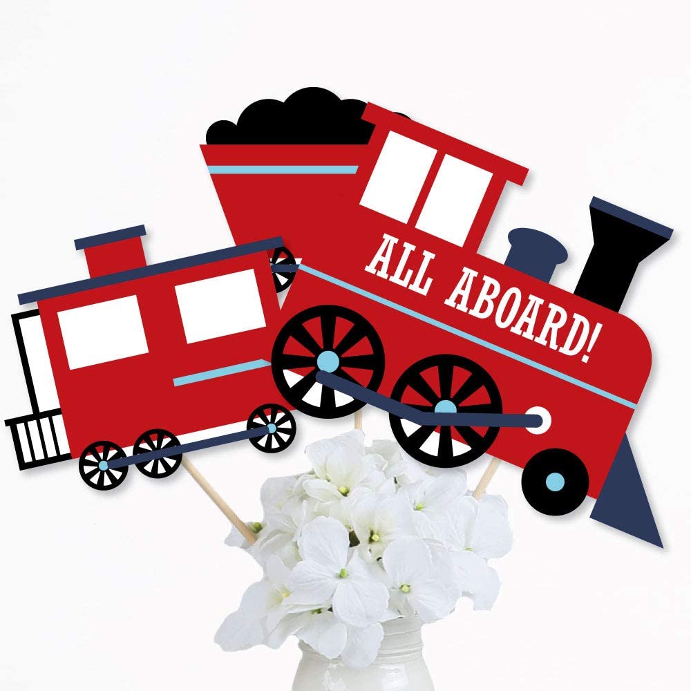 • EASY PARTY DECOR: Railroad Party Cross table decorations can be used as centerpieces when attached to the included dowels and inserted into vases or floral arrangements. They easily accent your baby shower or birthday party candy buffet when you add them to apothecary jars. Table toppers are also a great addition to any photo booth. The large shaped cut outs will make your party pics instantly shareable. Train centerpiece sticks are sure to make a statement however you choose to use them!
