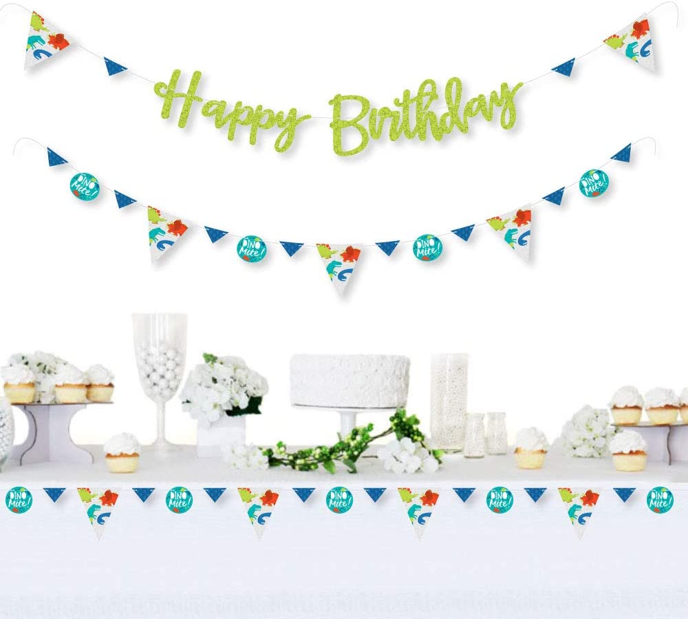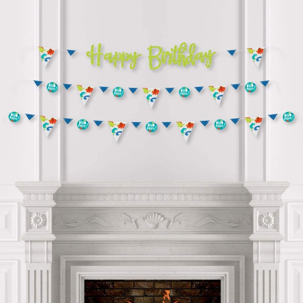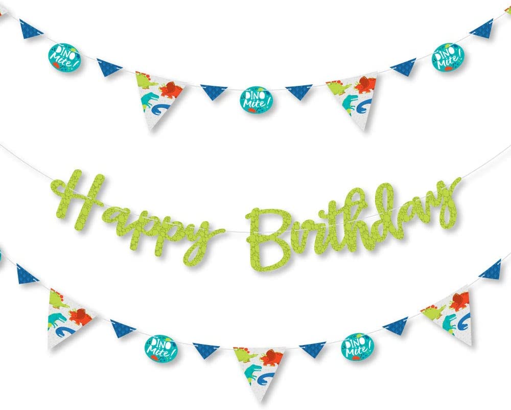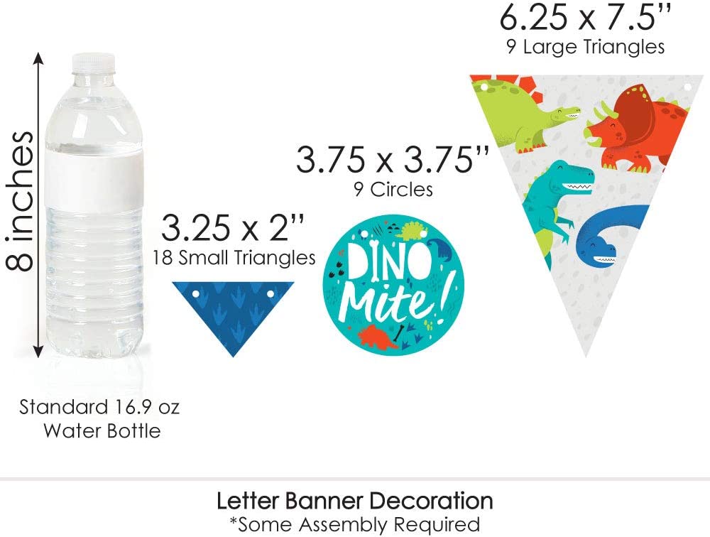 • VARIETY OF DESIGNS & SIZES! Roar Dinosaur Happy Birthday Letter Banner features coordinating pennant pieces and script letters. Decorate your event with 9 large triangle pennants (6.25” x 7.5”); 9 circle pennants (3.75” x 3.75”); 18 small triangle pennants (3.25” x 2”); and birthday party letters in script style lettering. Easily string them together with the included 10 yards of satin cording.