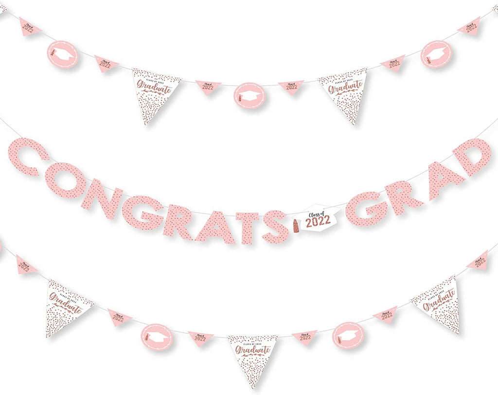Rose Gold Grad - 2022 Graduation Party Letter Banner Decoration - 36 Banner Cutouts and Congrats Grad Banner Letters