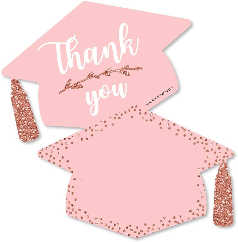 Rose Gold Grad - Shaped Thank You Cards - Graduation Party Thank You Note Cards with Envelopes - Set of 12