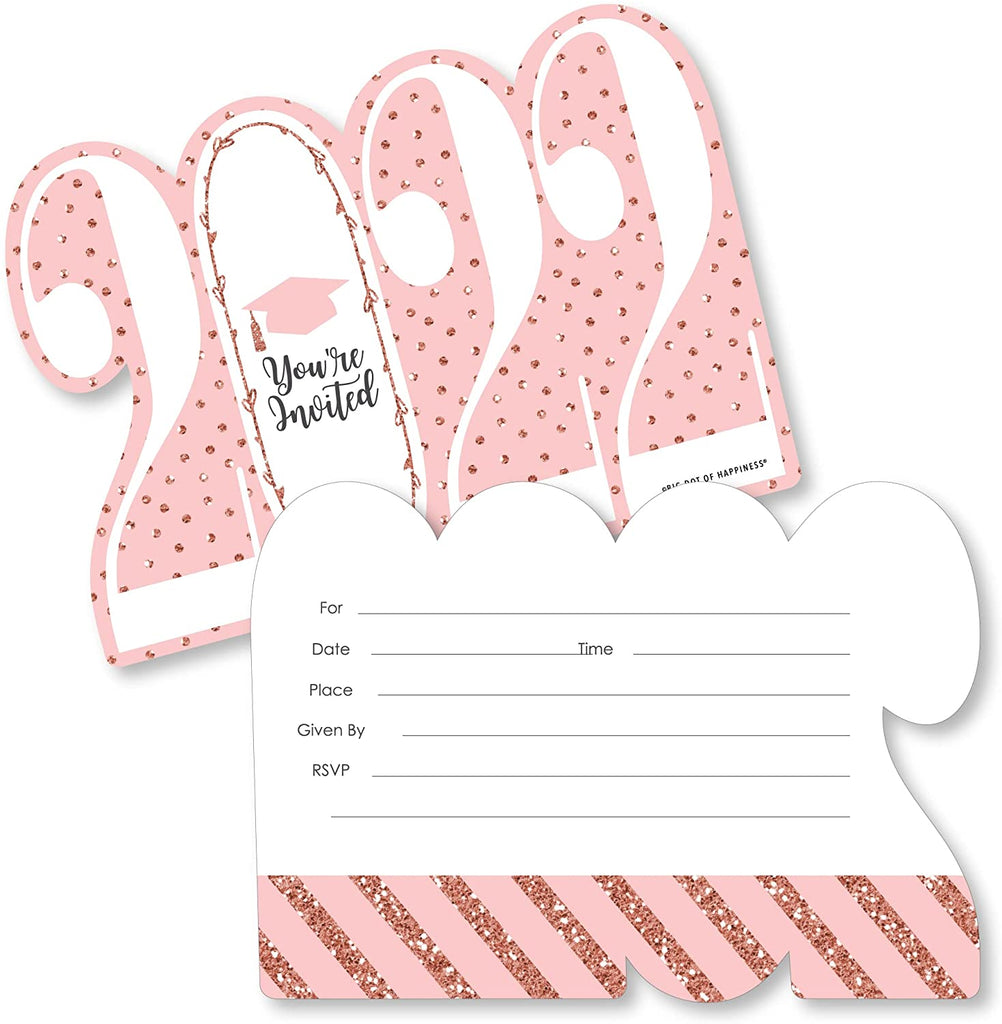 Rose Gold Grad - Shaped Fill-In Invitations - 2022 Graduation Party Invitation Cards with Envelopes - Set of 12