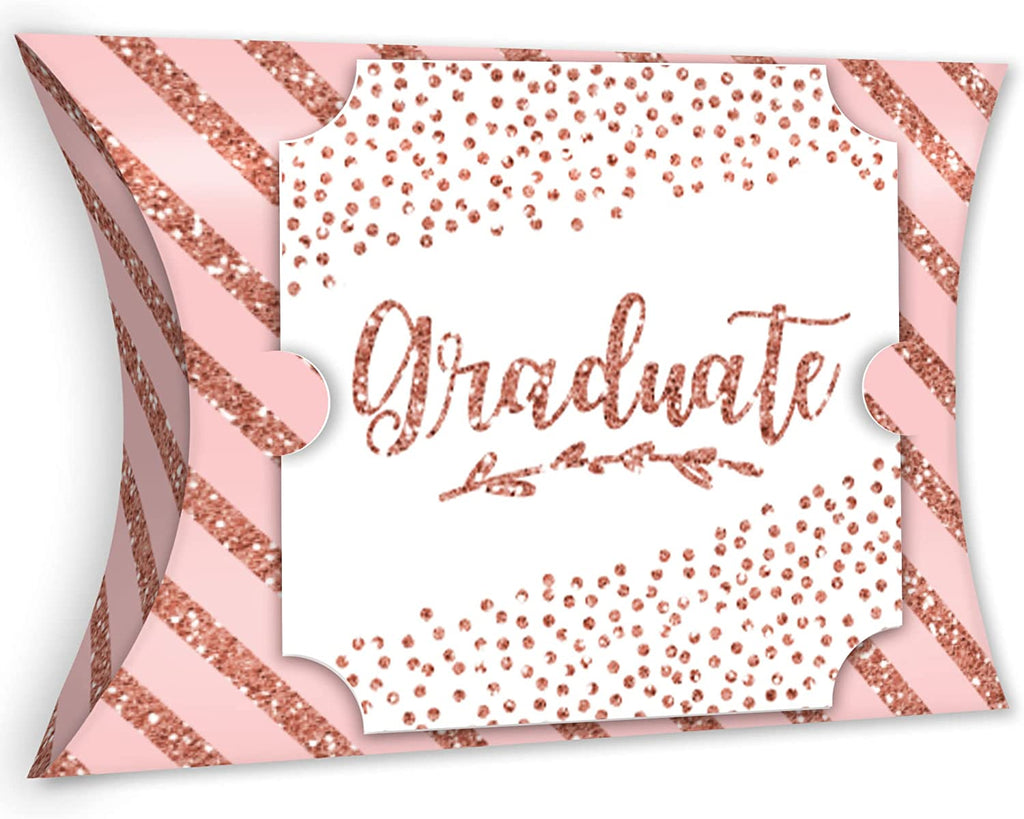 Rose Gold Grad - Favor Gift Boxes - Graduation Party Large Pillow Boxes - Set of 12