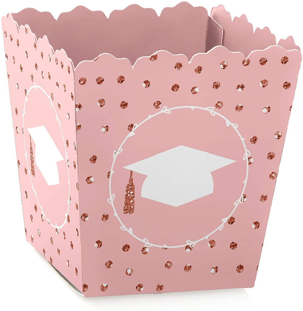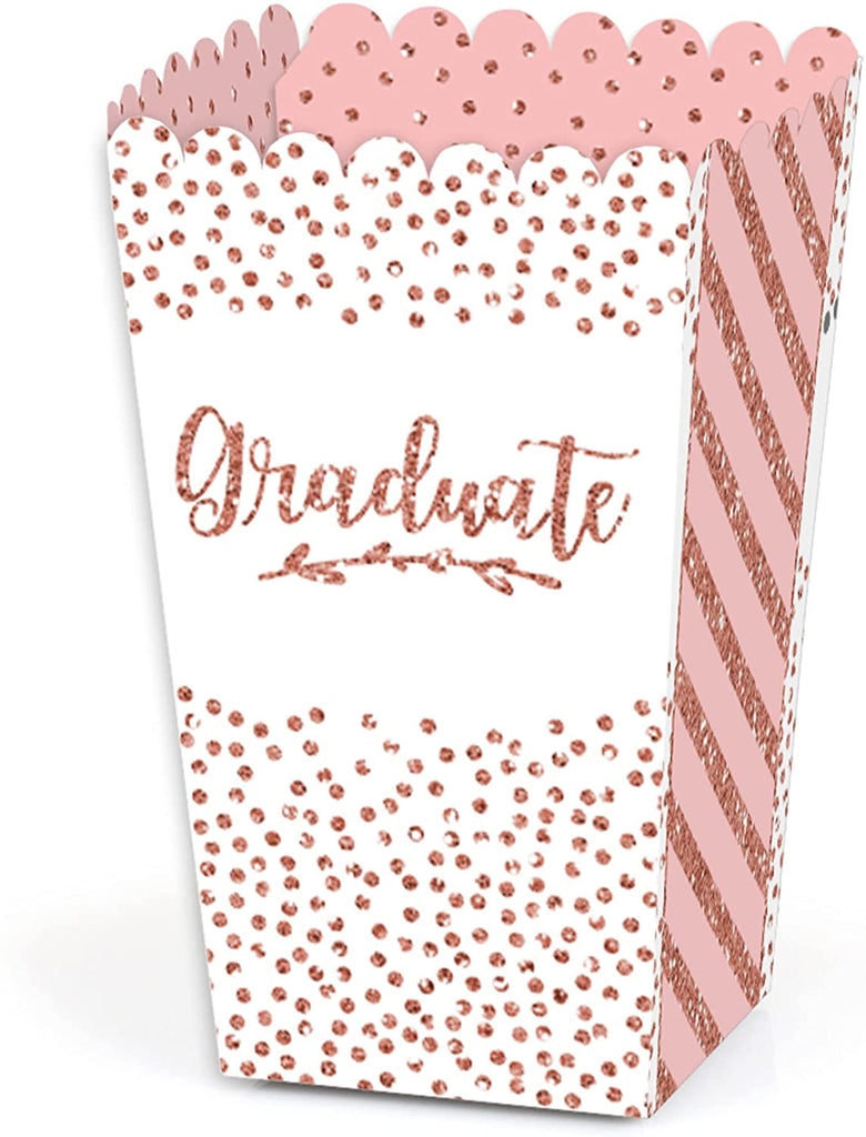 Rose Gold Grad - Graduation Party Favor Popcorn Treat Boxes - Set of 12