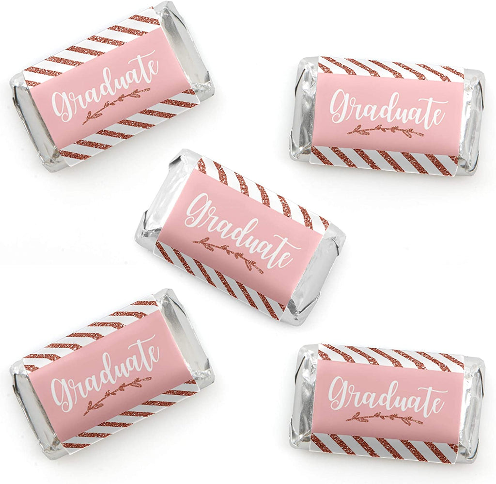 Rose Gold Grad - Mini Candy Bar Wrapper Stickers - Graduation Party Small Favors - 40 Count