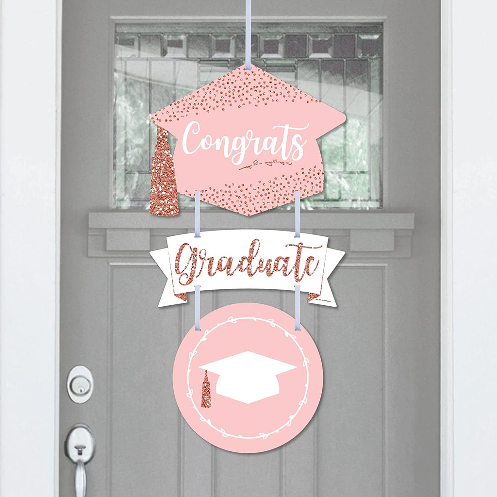 Rose Gold Grad - Hanging Porch Graduation Party Outdoor Decorations - Front Door Decor - 3 Piece Sign