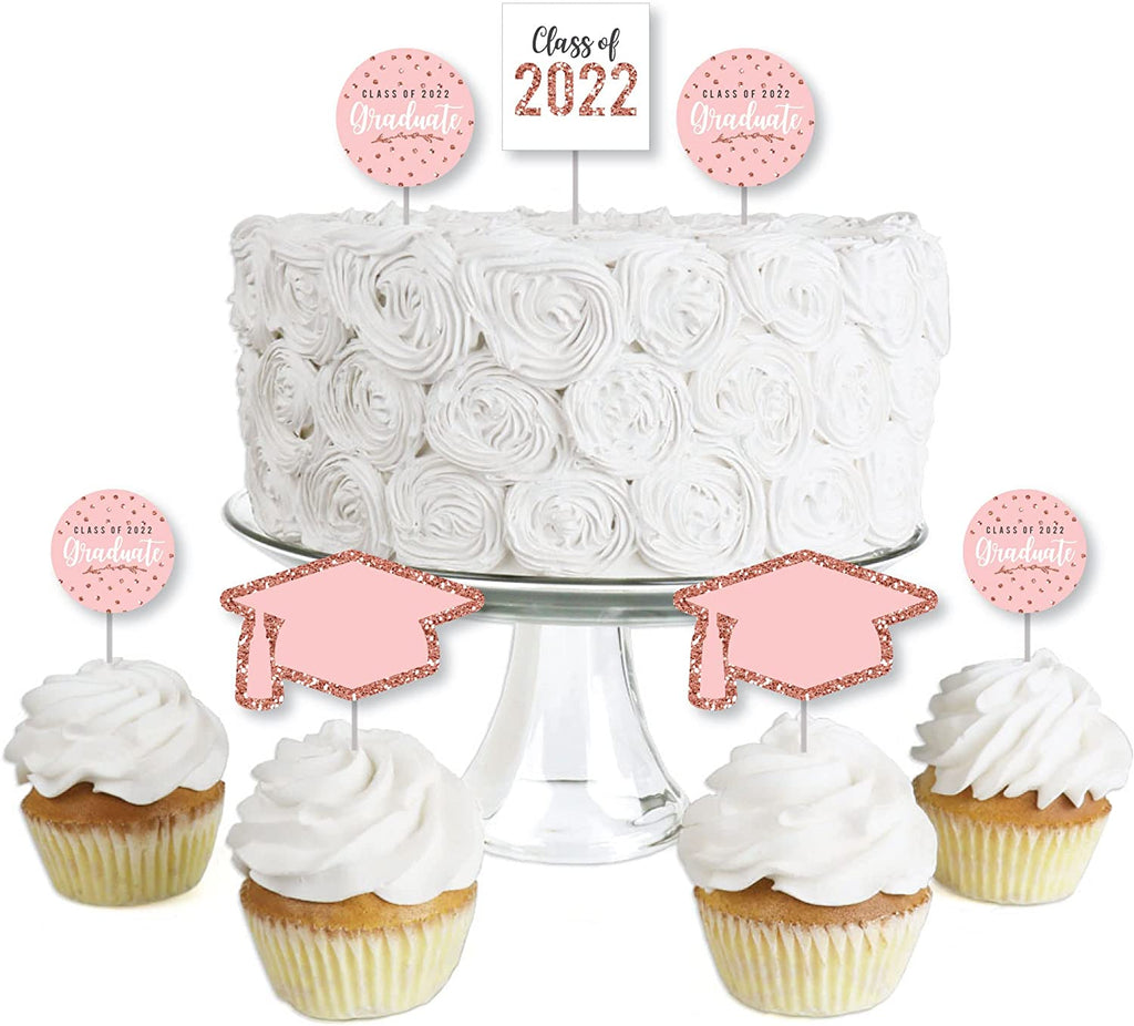 Rose Gold Grad - Dessert Cupcake Toppers - 2022 Graduation Party Clear Treat Picks - Set of 24