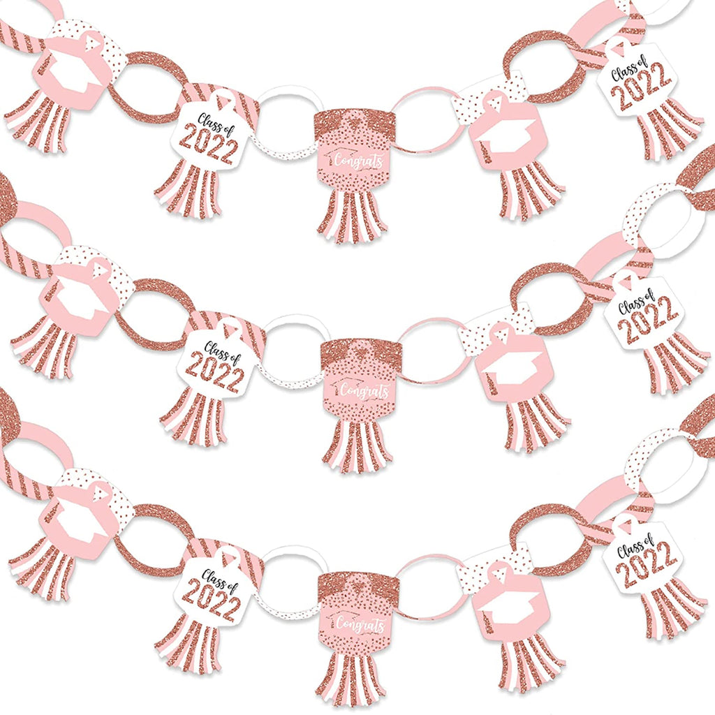 Rose Gold Grad - 90 Chain Links and 30 Paper Tassels Decoration Kit - 2022 Graduation Party Paper Chains Garland - 21 feet