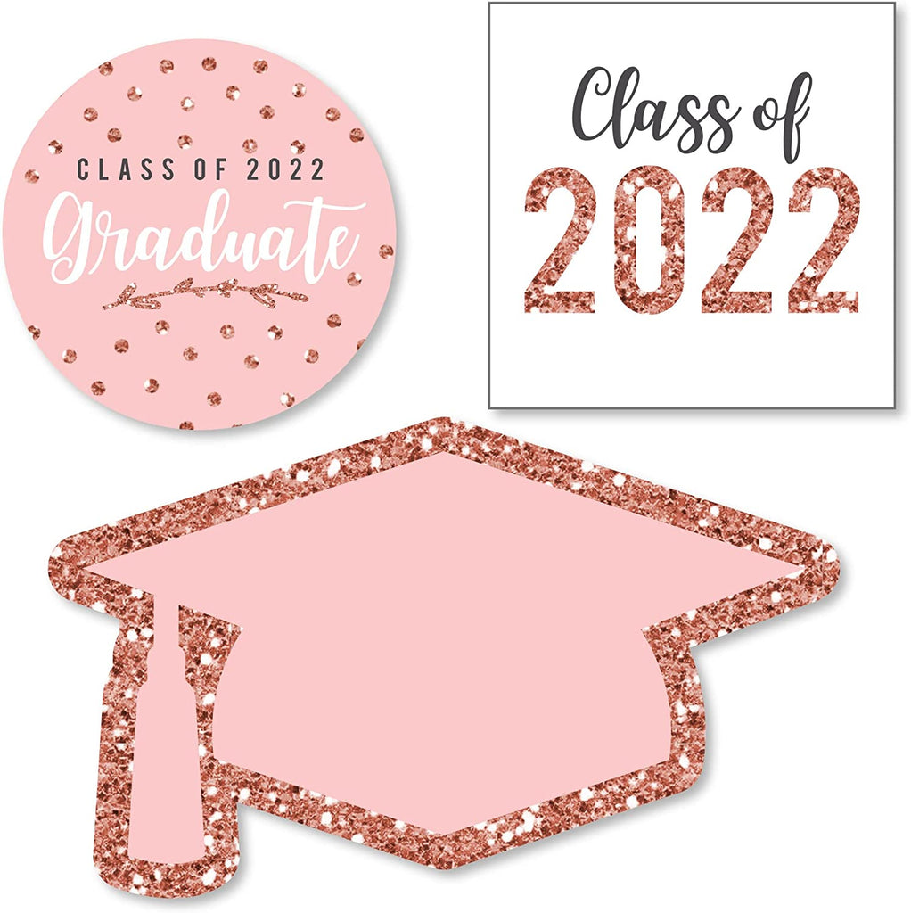 Rose Gold Grad - DIY Shaped 2022 Graduation Party Cut-Outs - 24 Count
