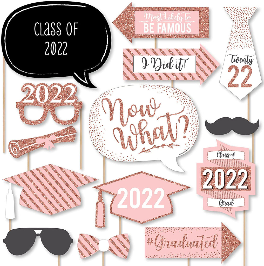 Rose Gold - 2022 Graduation Party Photo Booth Props Kit - 20 Count