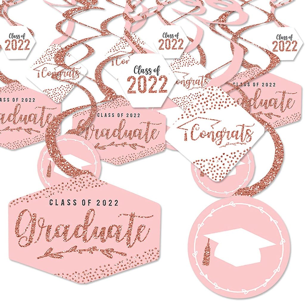 Rose Gold Grad - 2022 Graduation Party Hanging Decor - Party Decoration Swirls - Set of 40
