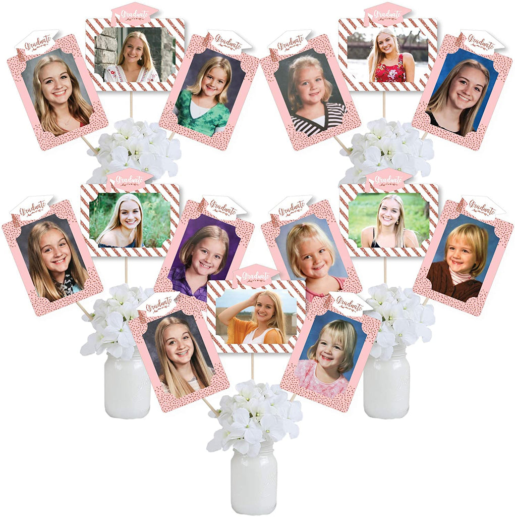 Rose Gold Grad - Graduation Party Picture Centerpiece Sticks - Photo Table Toppers - 15 Pieces