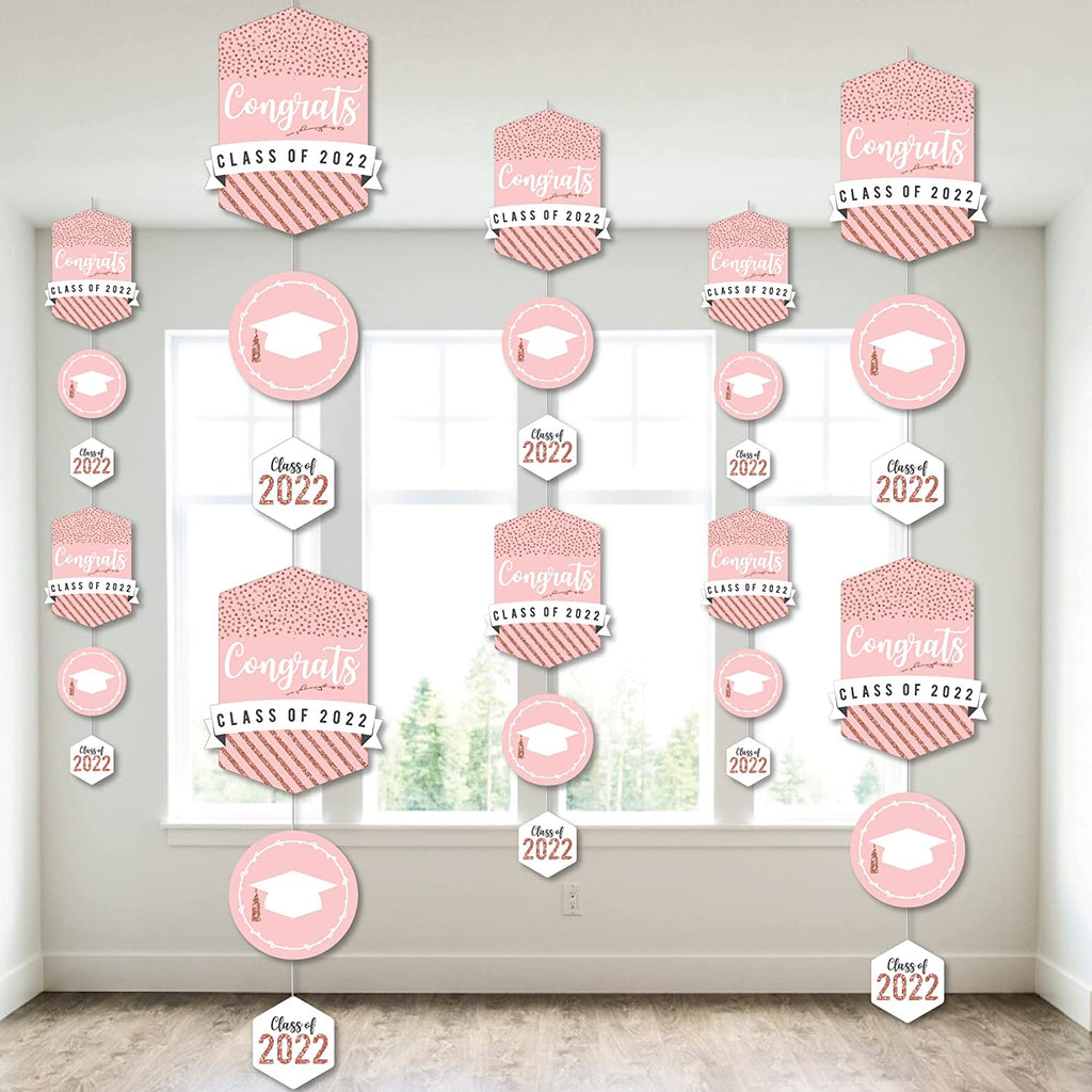 Rose Gold Grad - 2022 Graduation Party DIY Dangler Backdrop - Hanging Vertical Decorations - 30 Pieces