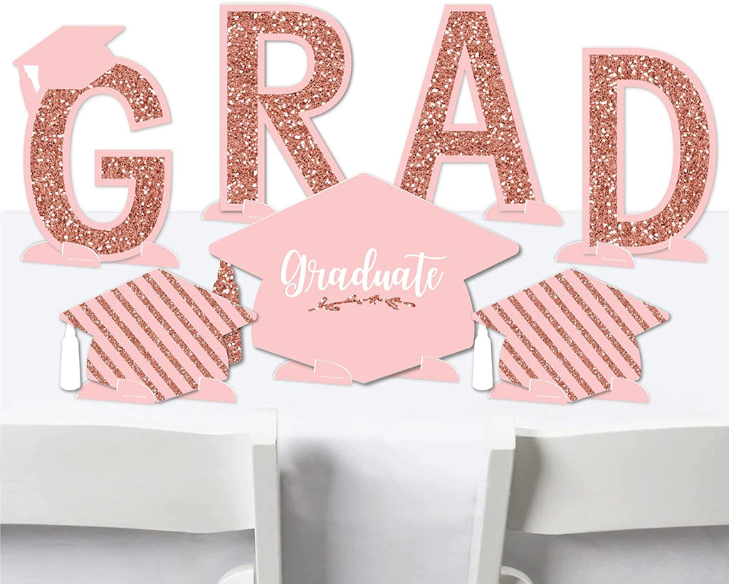Rose Gold Grad - Graduation Party Centerpiece Table Decorations - Tabletop Standups - 7 Pieces