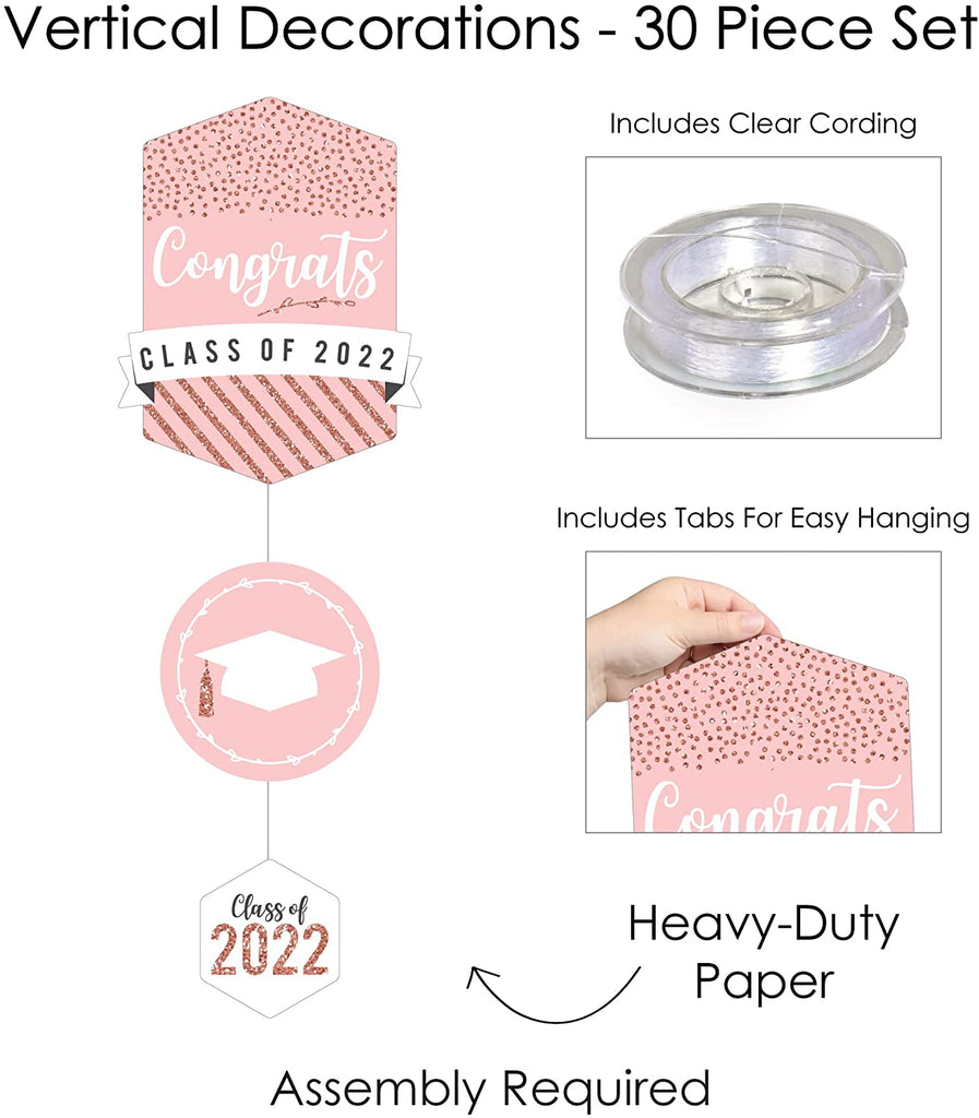 Rose Gold Grad - 2022 Graduation Party DIY Dangler Backdrop - Hanging Vertical Decorations - 30 Pieces is backordered and will ship as soon as it is back in stock.