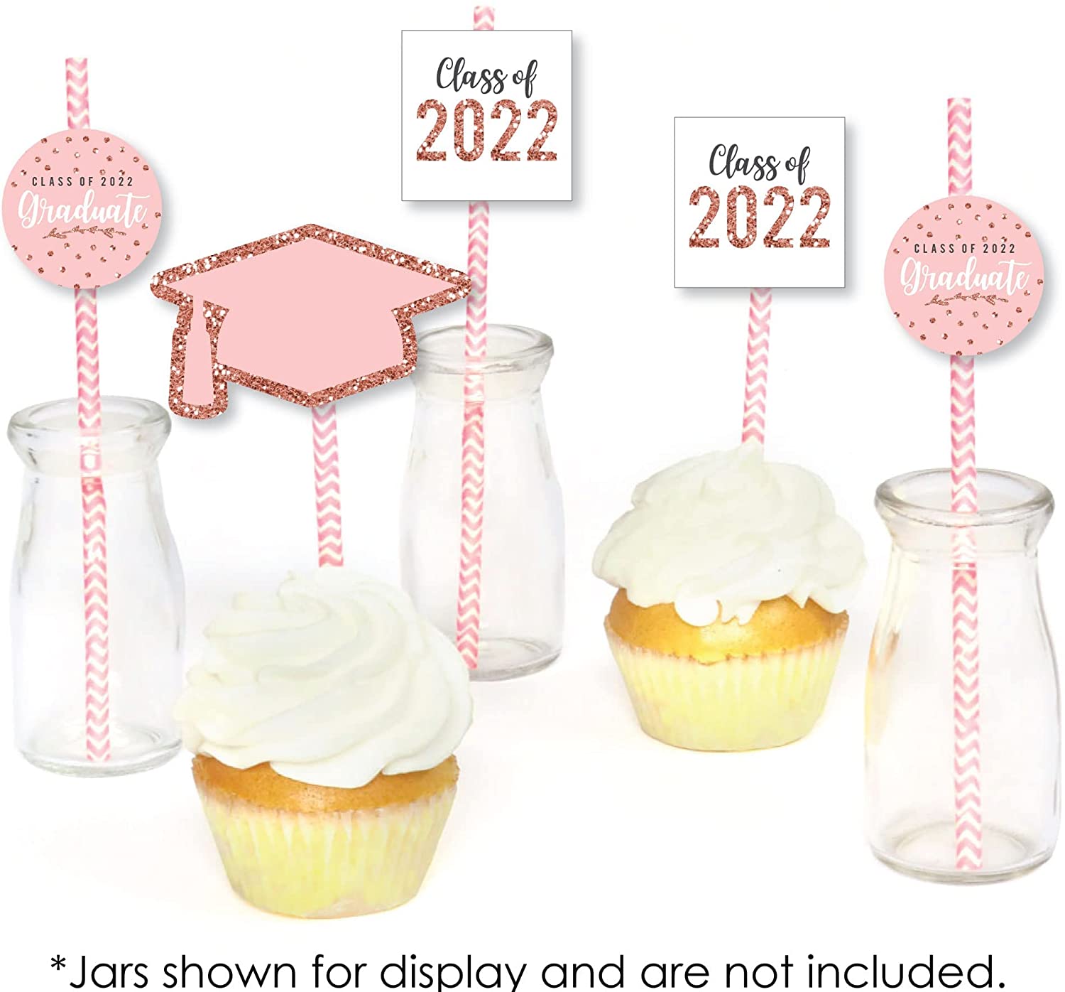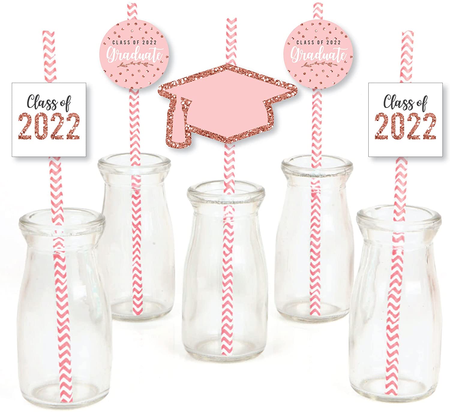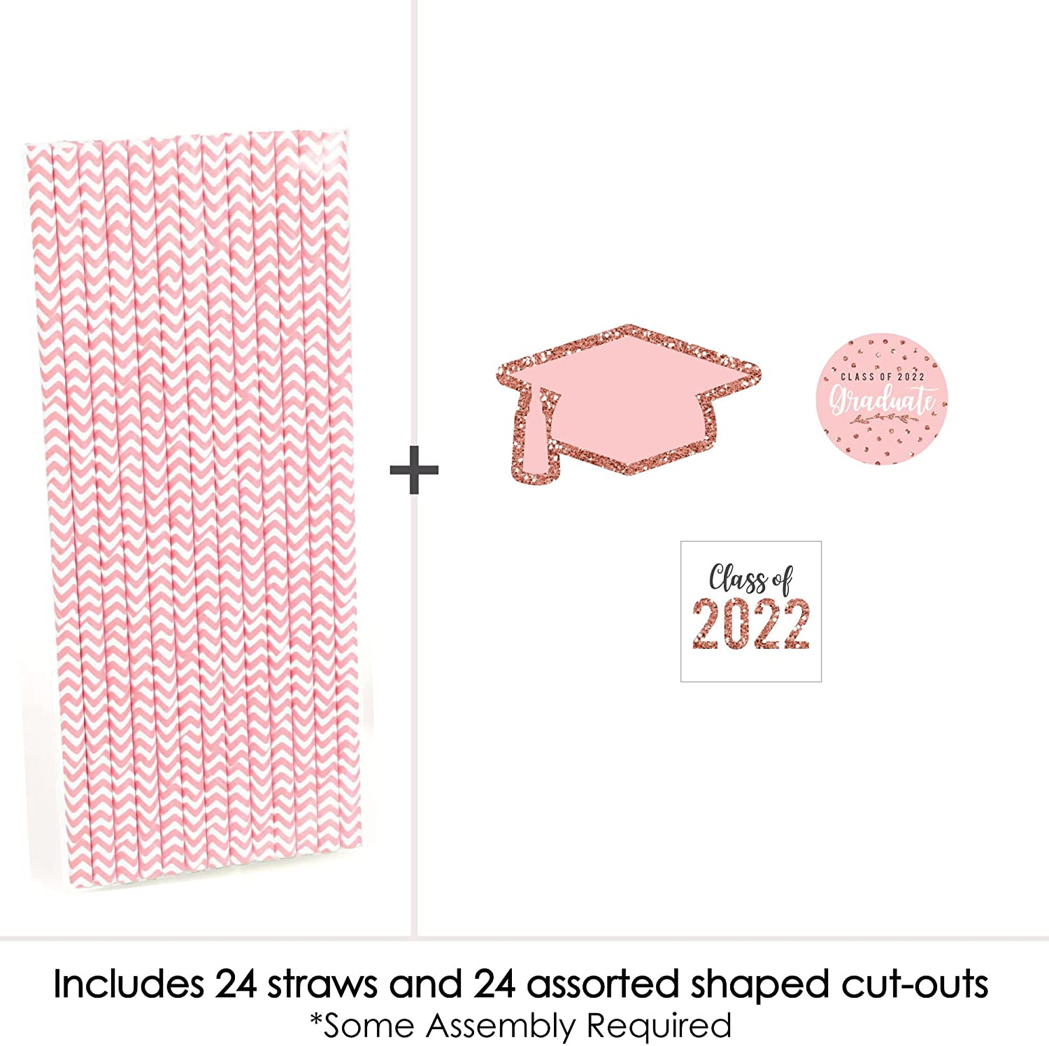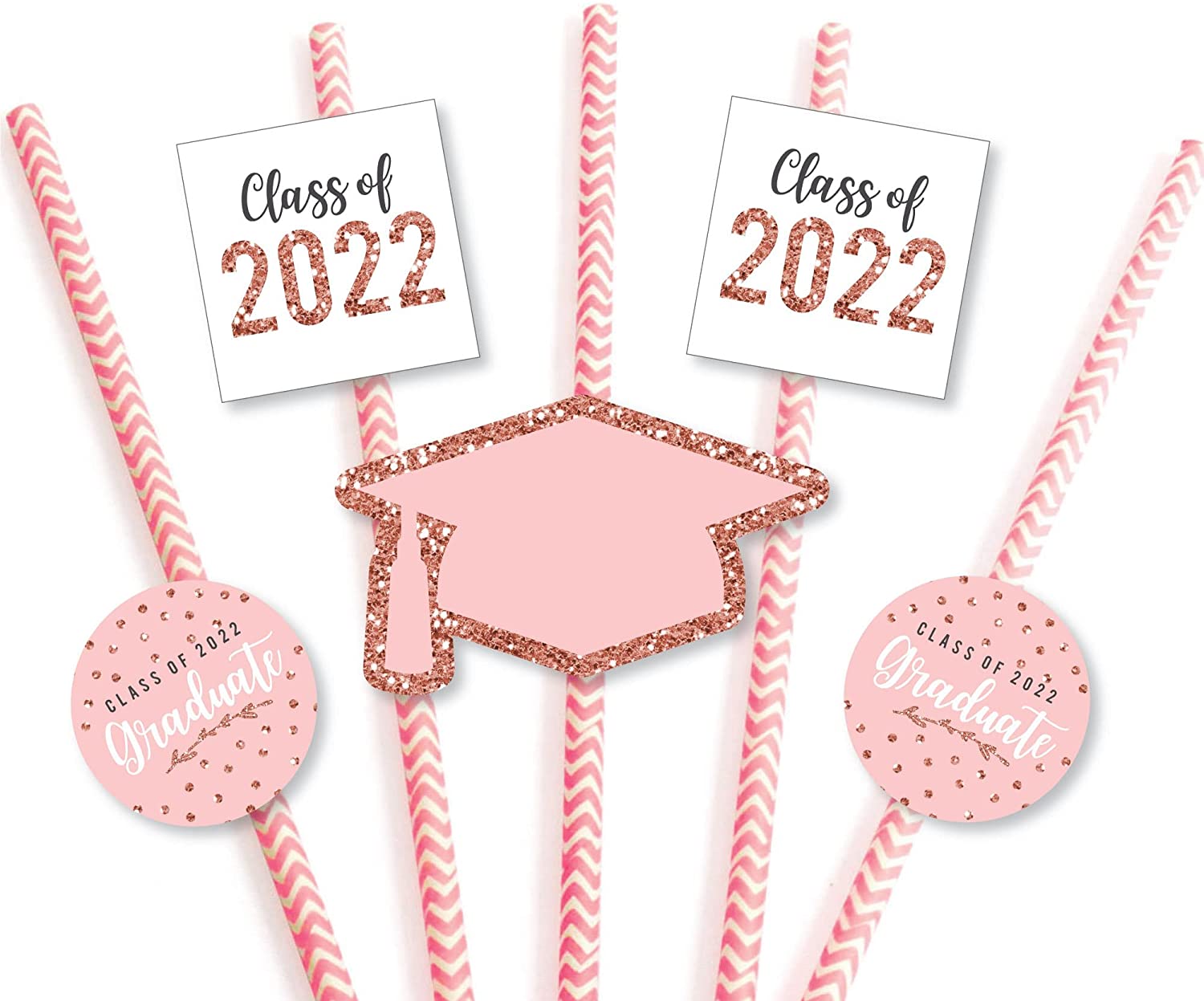 Rose Gold Grad - Paper Straw Decor - 2022 Graduation Party Striped Decorative Straws - Set of 24 is backordered and will ship as soon as it is back in stock.