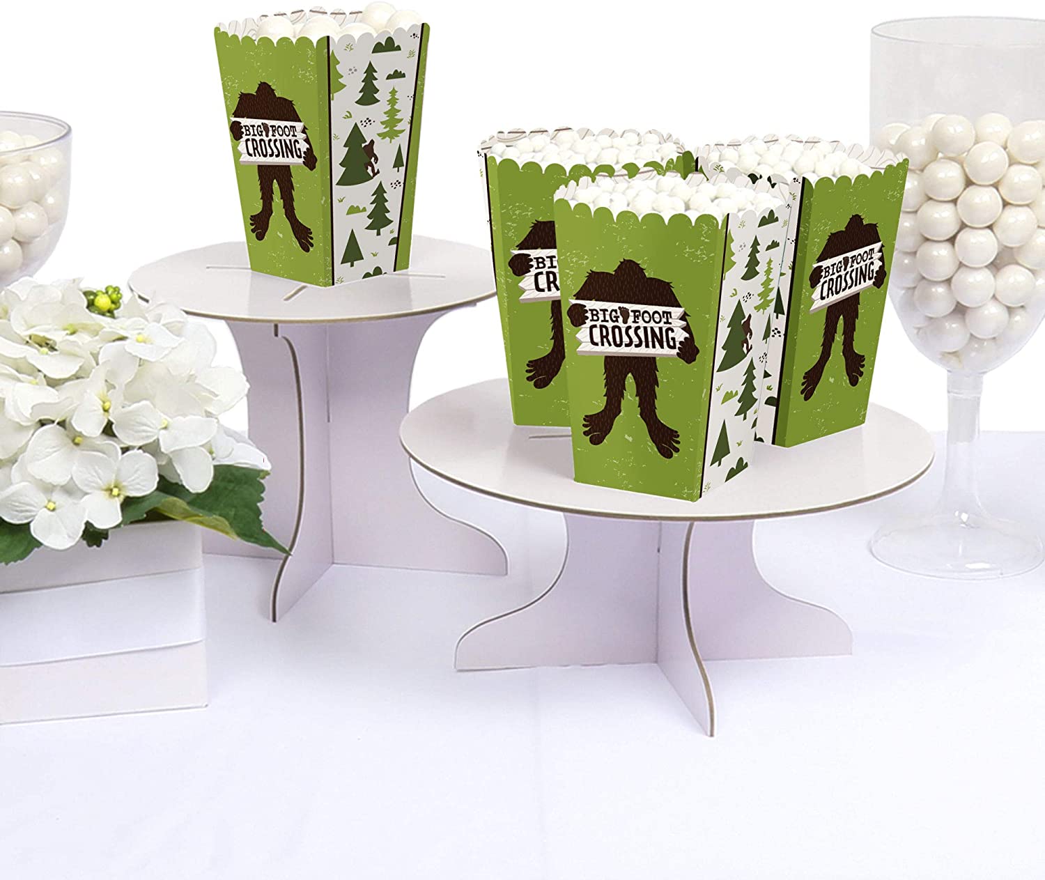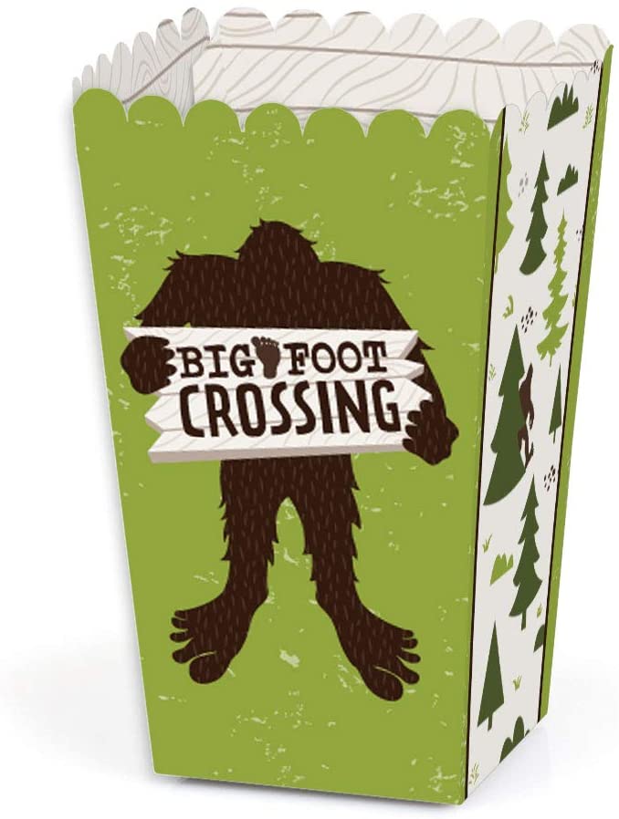 Sasquatch Crossing - Bigfoot Party or Birthday Party Favor Popcorn Treat Boxes - Set of 12 is backordered and will ship as soon as it is back in stock.