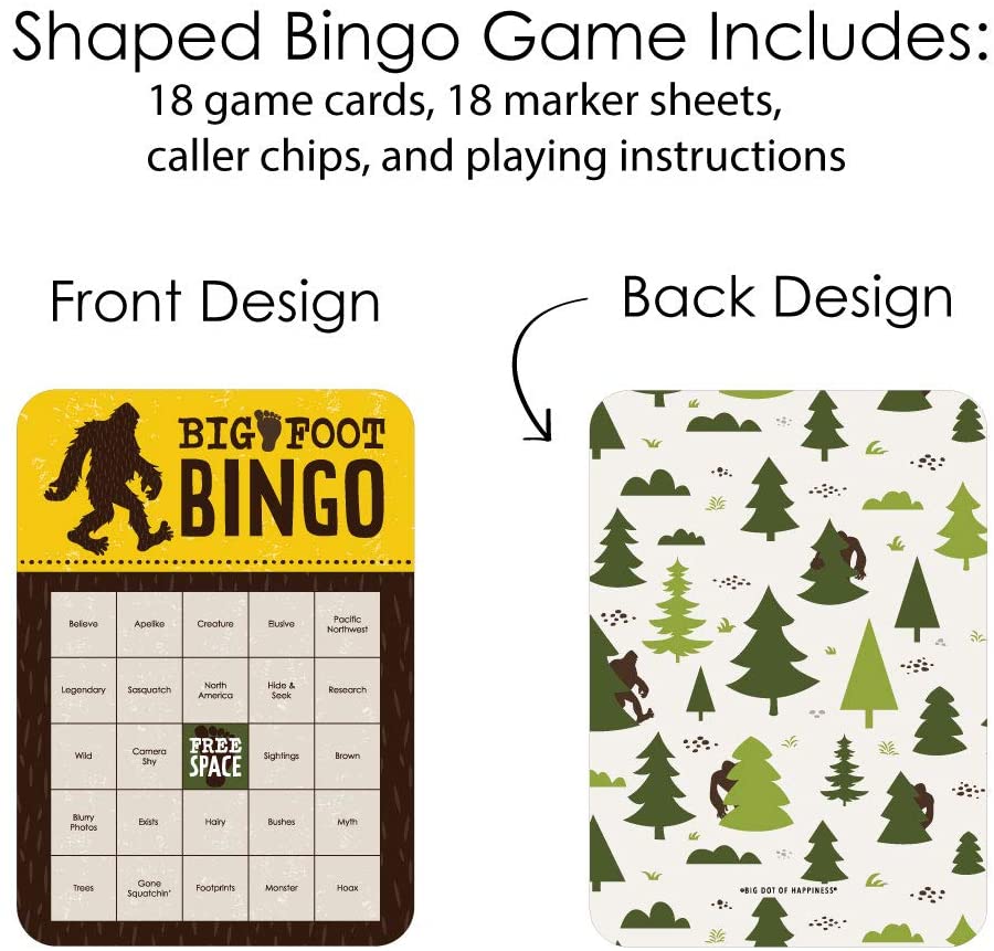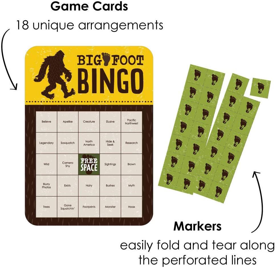 Sasquatch Crossing - Bingo Cards and Markers - Bigfoot Party or Birthday Party Bingo Game - Set of 18 is backordered and will ship as soon as it is back in stock.