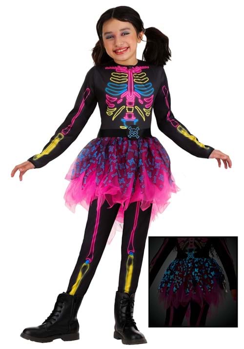 Neon Skeleton Costume Dress for Girls