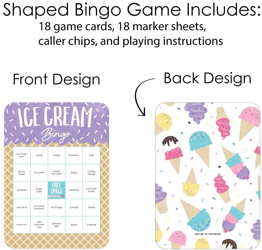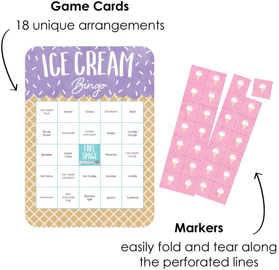 Scoop Up the Fun - Ice Cream - Bingo Cards and Markers - Sprinkles Party Bingo Game - Set of 18 is backordered and will ship as soon as it is back in stock.