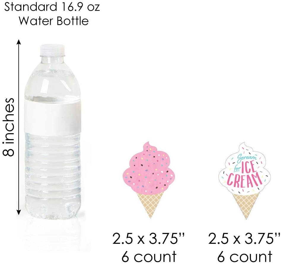 • Plastic clear treat picks SIZE measure 3.5” tall and are packaged in a food-safe environment. Scoop Up The Fun - Ice Cream shaped paper cut-outs vary in size and coordinate well with pick size. Cupcake wrappers are cut with a decorative edge and adjust to fit cupcakes 1.75” - 2.5” Wide. Wrappers measure 1.75” Tall. Wrappers are meant for one-time-use only and should not be baked.