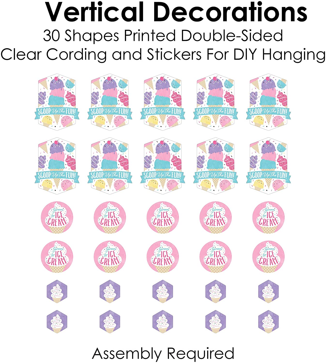 Scoop Up The Fun - Ice Cream - Sprinkles Party DIY Dangler Backdrop - Hanging Vertical Decorations - 30 Pieces is backordered and will ship as soon as it is back in stock.