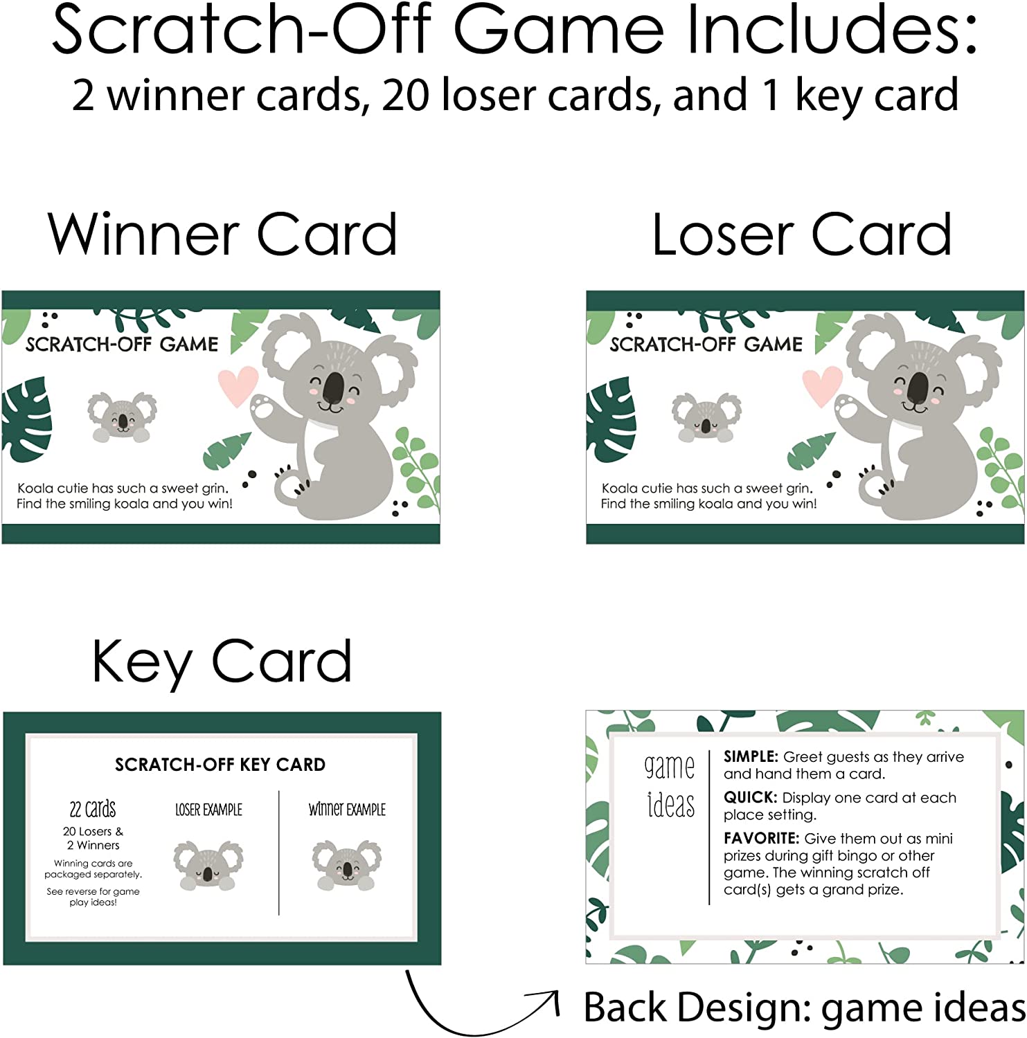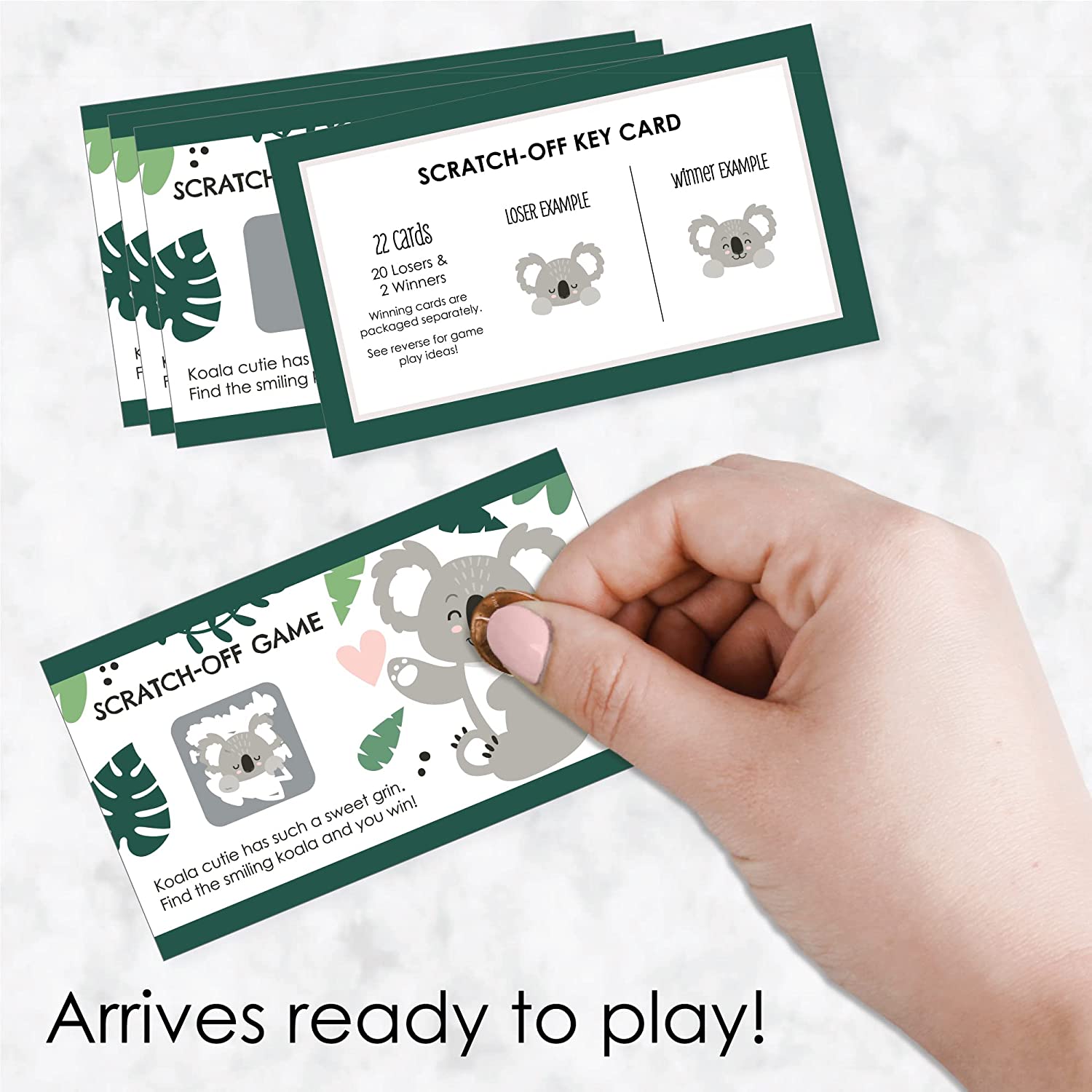 • Koala Cutie Scratch-Off Cards INCLUDES 22 bear baby shower or birthday party game cards: 20 "loser" cards and 2 "winner" cards.