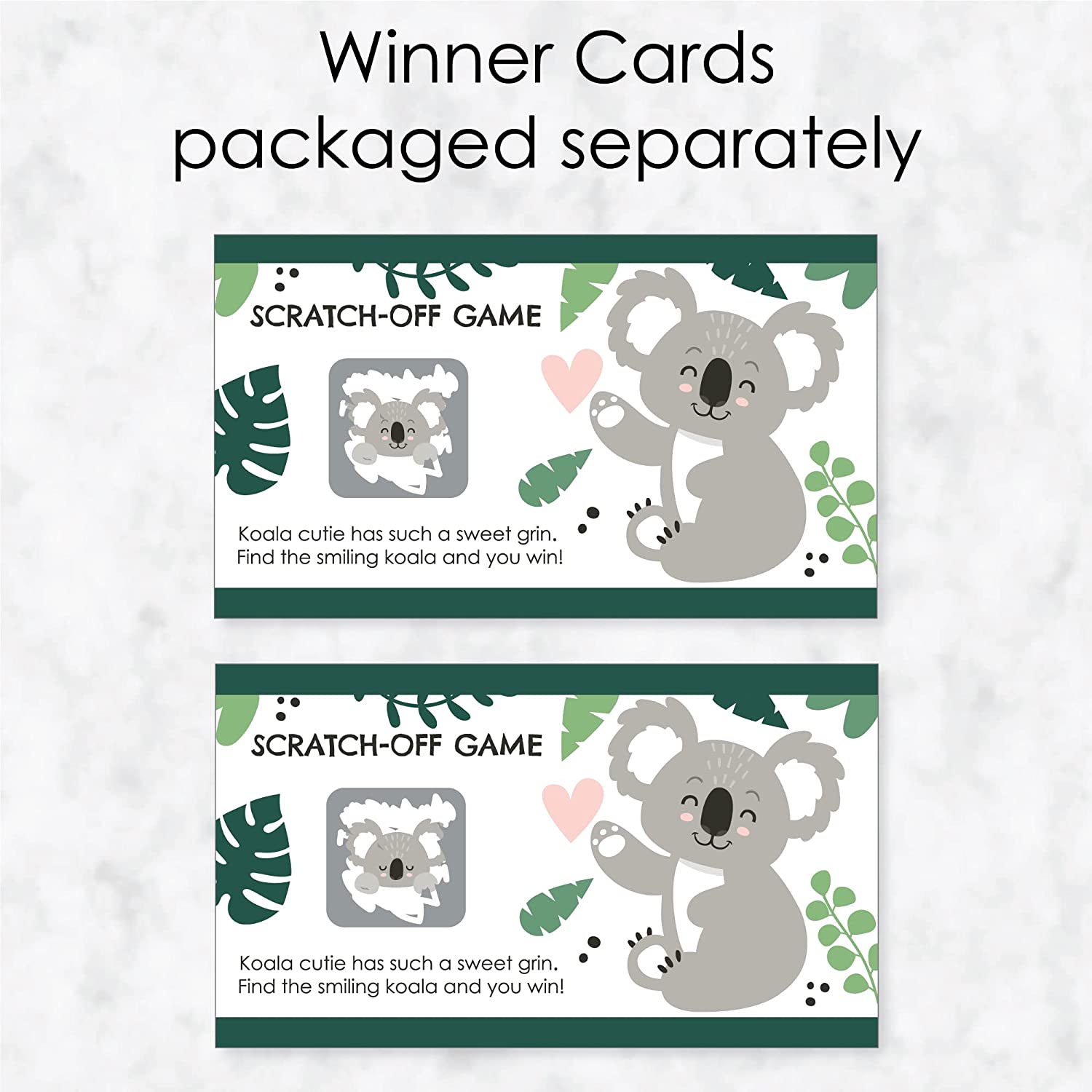 • FUN PARTY GAME: Koala Cutie scratch-off cards will be enjoyed by bear baby shower or birthday party guests of all ages. Each game card measures 2.75” tall x 4.75” wide. Winner and loser game cards are packaged separately so it is easy to pre-select the game winners if you choose.