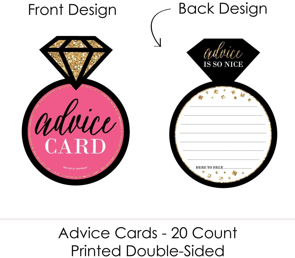 • MUST-HAVE PARTY SUPPLY: Bridal shower or bachelorette party guests of all ages will love sharing their advice on a Ring Shaped Advice Card. Add an advice card to your party invitations, display at the guest book area, or hand out as your guests arrive.