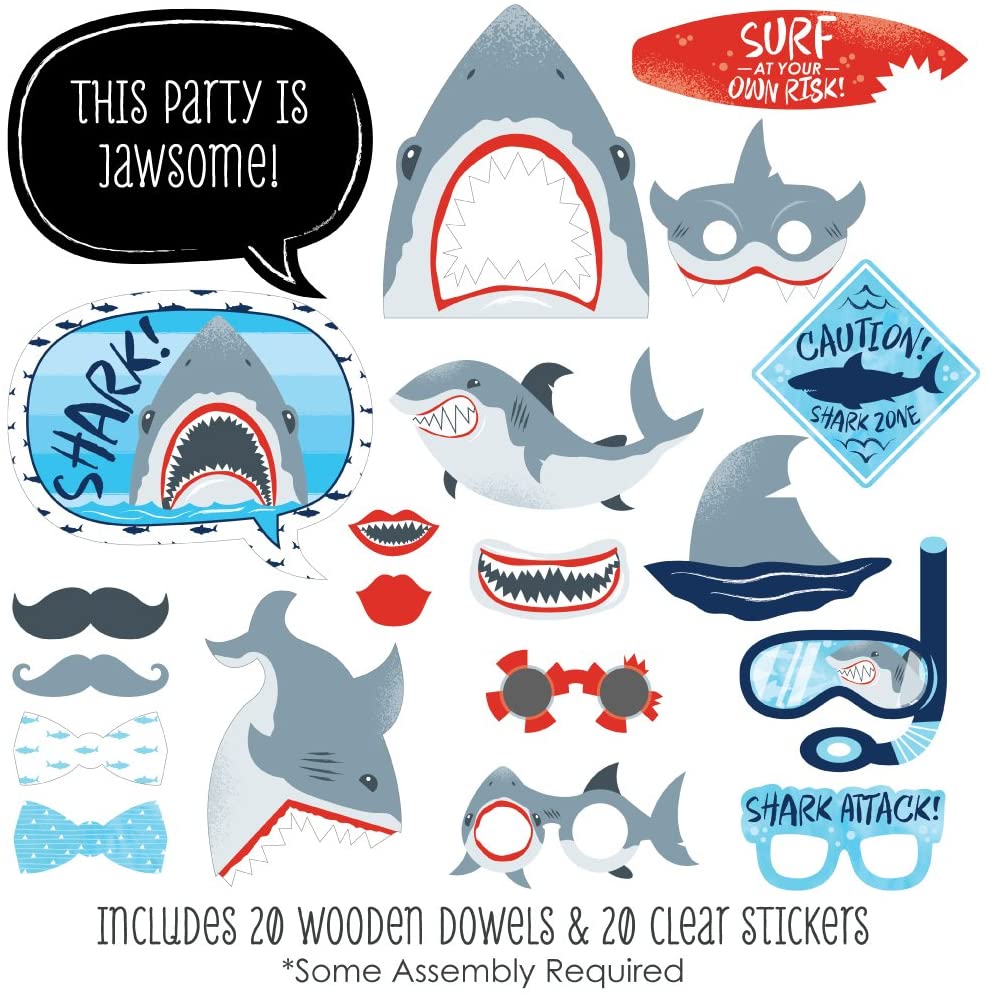 Shark Zone - Jawsome Shark Party or Birthday Party Photo Booth Props Kit - 20 Count is backordered and will ship as soon as it is back in stock.