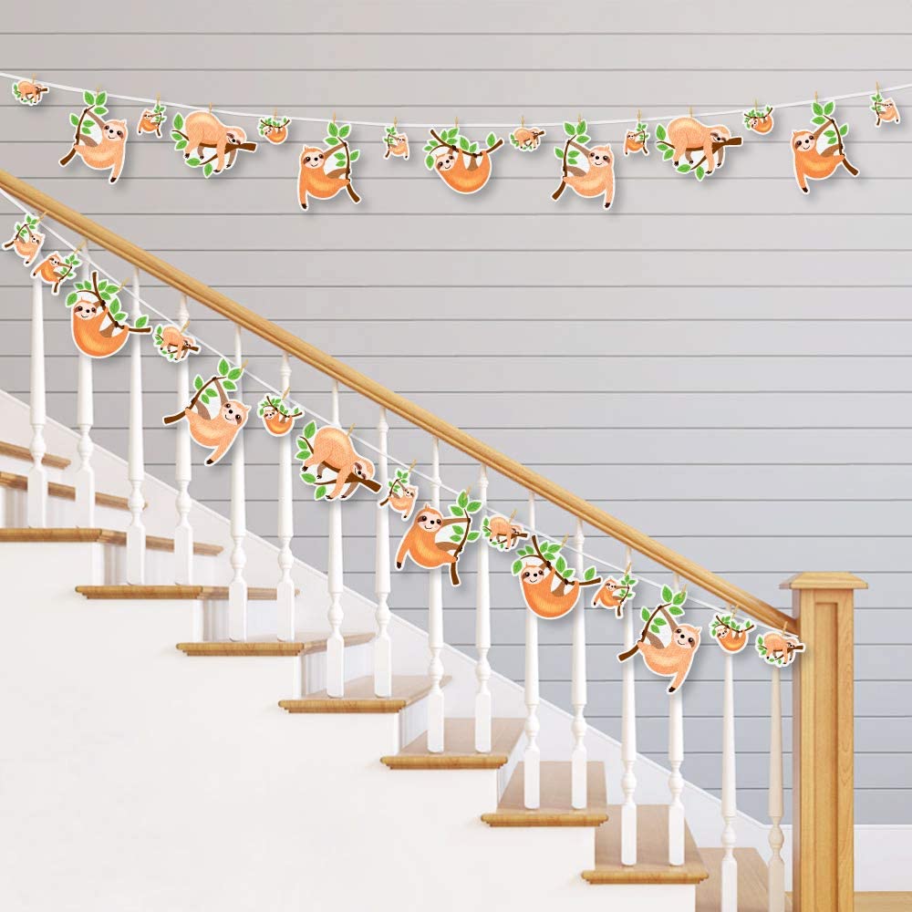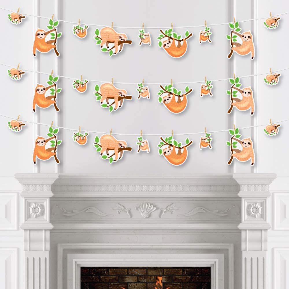 • EASY PARTY DECOR: Style any baby shower or birthday party with Let’s Hang - Sloth clothespin garland banner. Before hanging, plan out your desired pattern by alternating in sizes. Using a miniature clothespin, clip shapes on the included cord. Hang finished DIY garland banner at the entrance of your party, over mantelpiece, along buffet tables, or as highchair banner decoration. After the party, reuse the clothespins and cord to hang event photos as a fun keepsake.