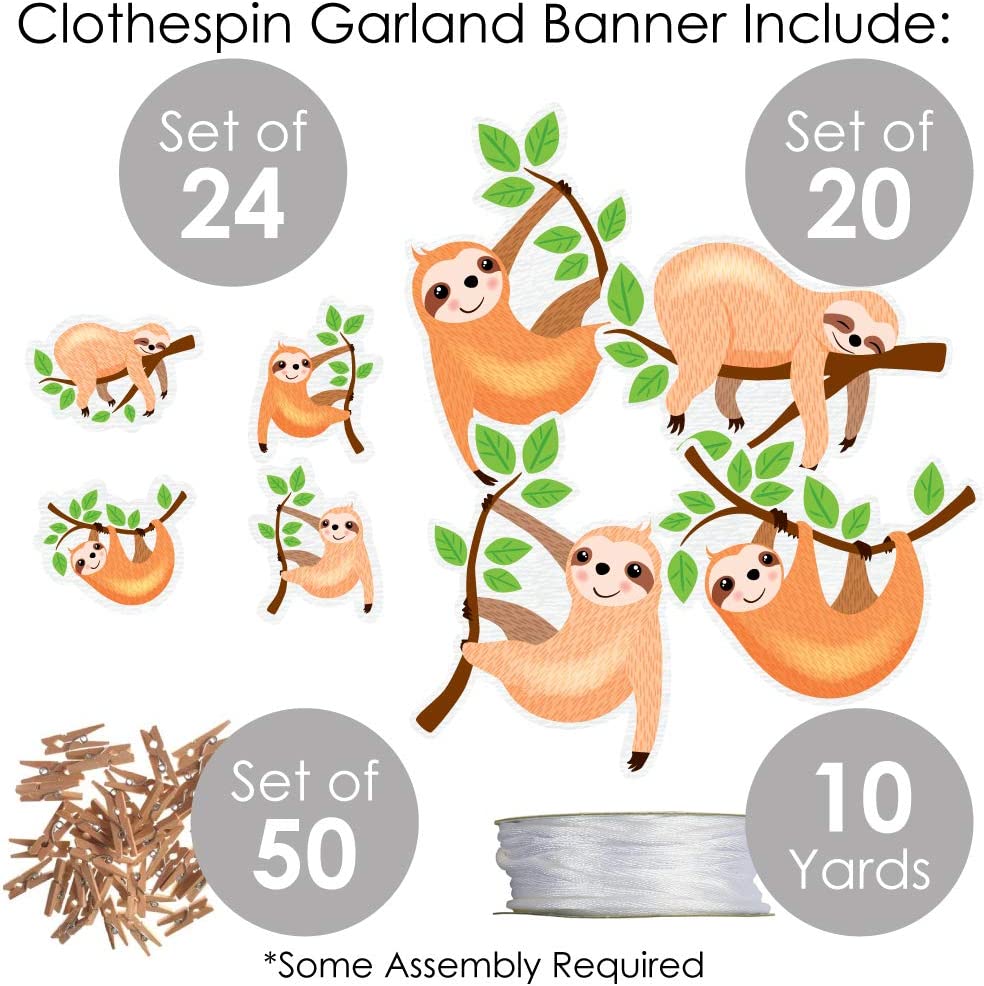 Let’s Hang - Sloth - Baby Shower or Birthday Party DIY Decorations - Clothespin Garland Banner - 44 Pieces