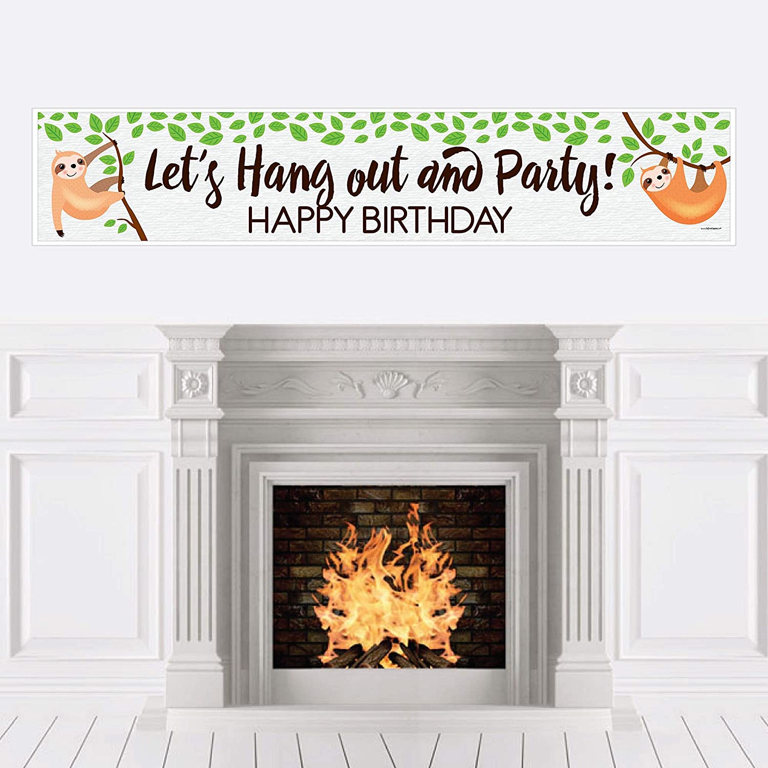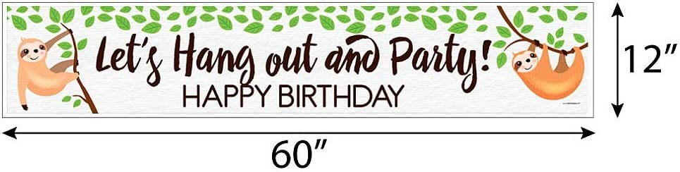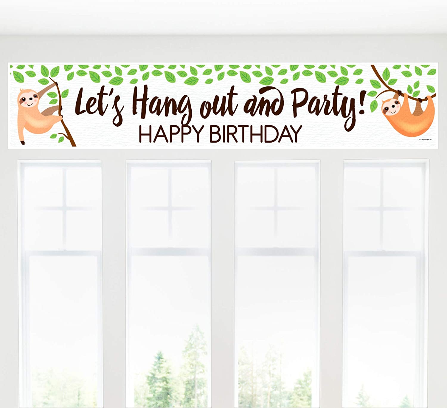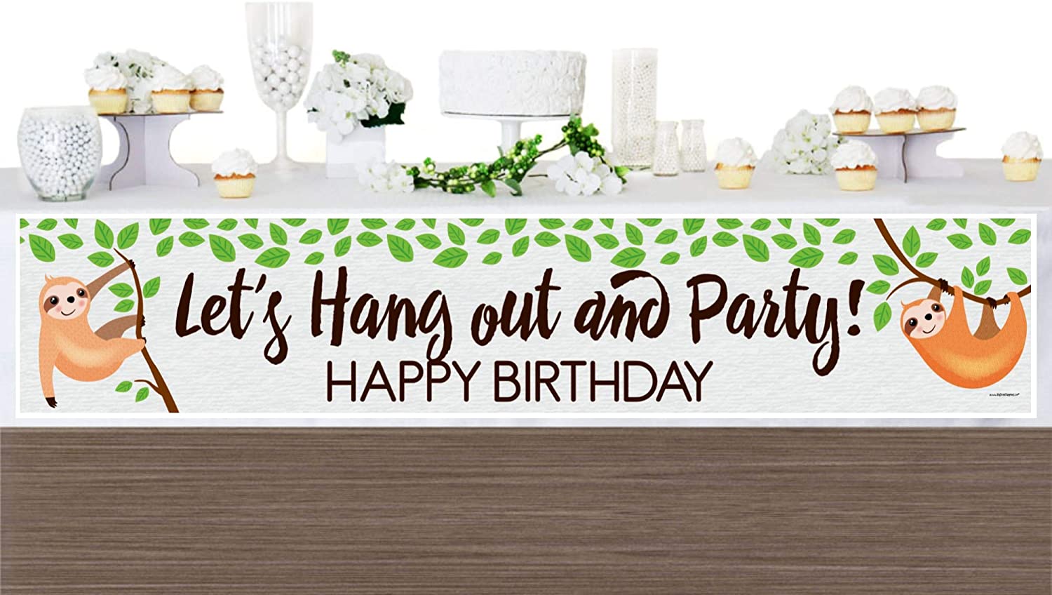 • SLOTH PARTY DECORATIONS: A Let’s Hang - Sloth - Birthday Party Banner is an easy way to decorate for your party and bring your birthday party theme to life. Hang at the entrance of your sloth birthday party, over the food table or candy buffet, at the gift table or behind the head table. Let’s Hang - Sloth banners are also great when displayed outdoors to welcome all your birthday party guests as they arrive.