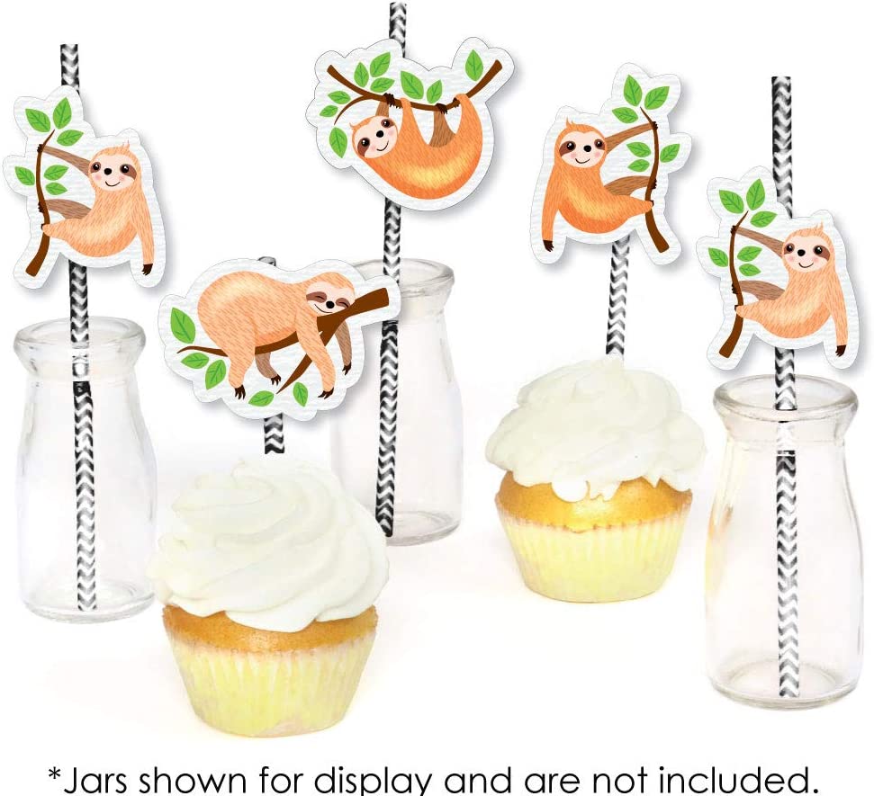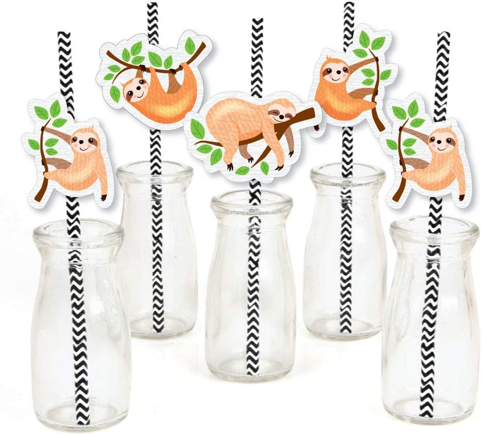 Let's Hang - Sloth - Paper Straw Decor - Baby Shower or Birthday Party Striped Decorative Straws - Set of 24 is backordered and will ship as soon as it is back in stock.