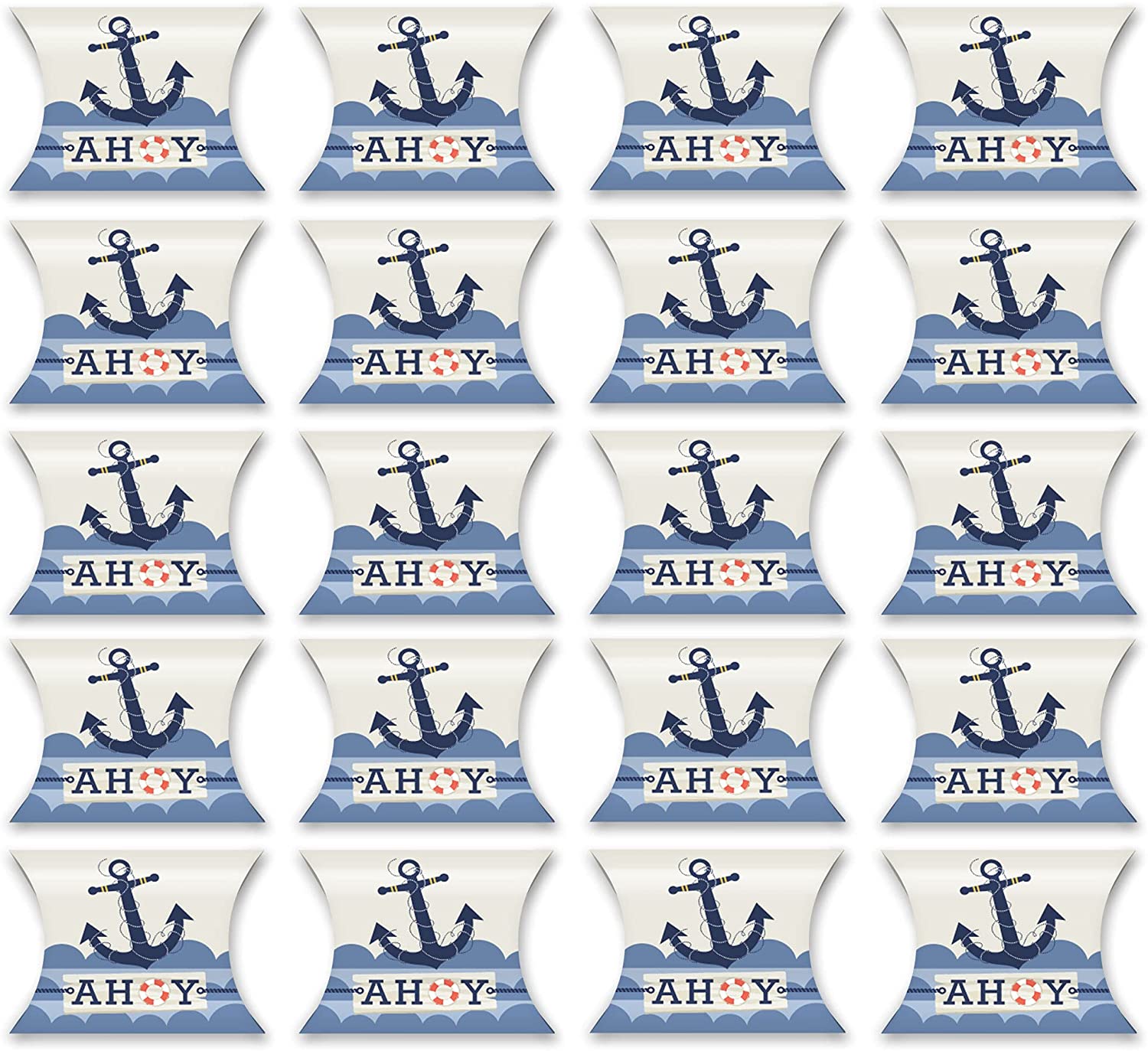 Ahoy - Nautical - Favor Gift Boxes - Baby Shower or Birthday Party Petite Pillow Boxes - Set of 20 is backordered and will ship as soon as it is back in stock.