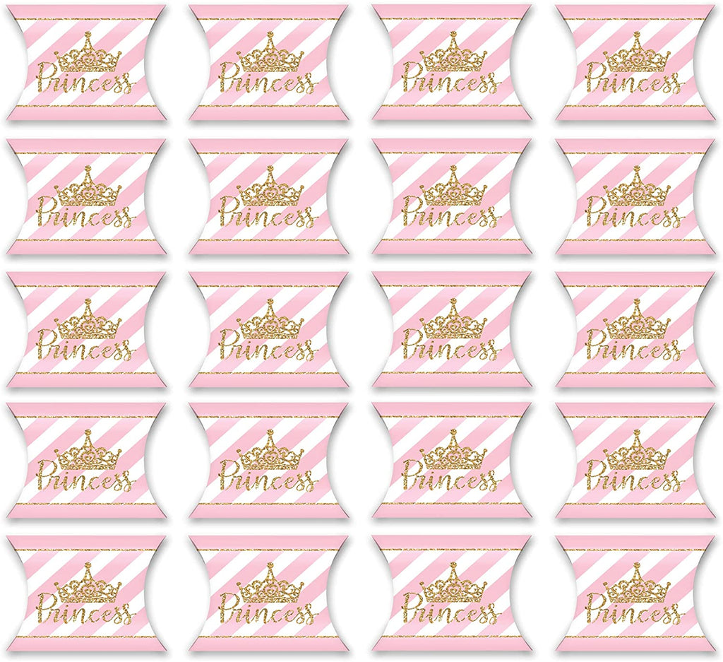 Little Princess Crown - Favor Gift Boxes - Pink and Gold Princess Baby Shower or Birthday Party Petite Pillow Boxes - Set of 20 is backordered and will ship as soon as it is back in stock.