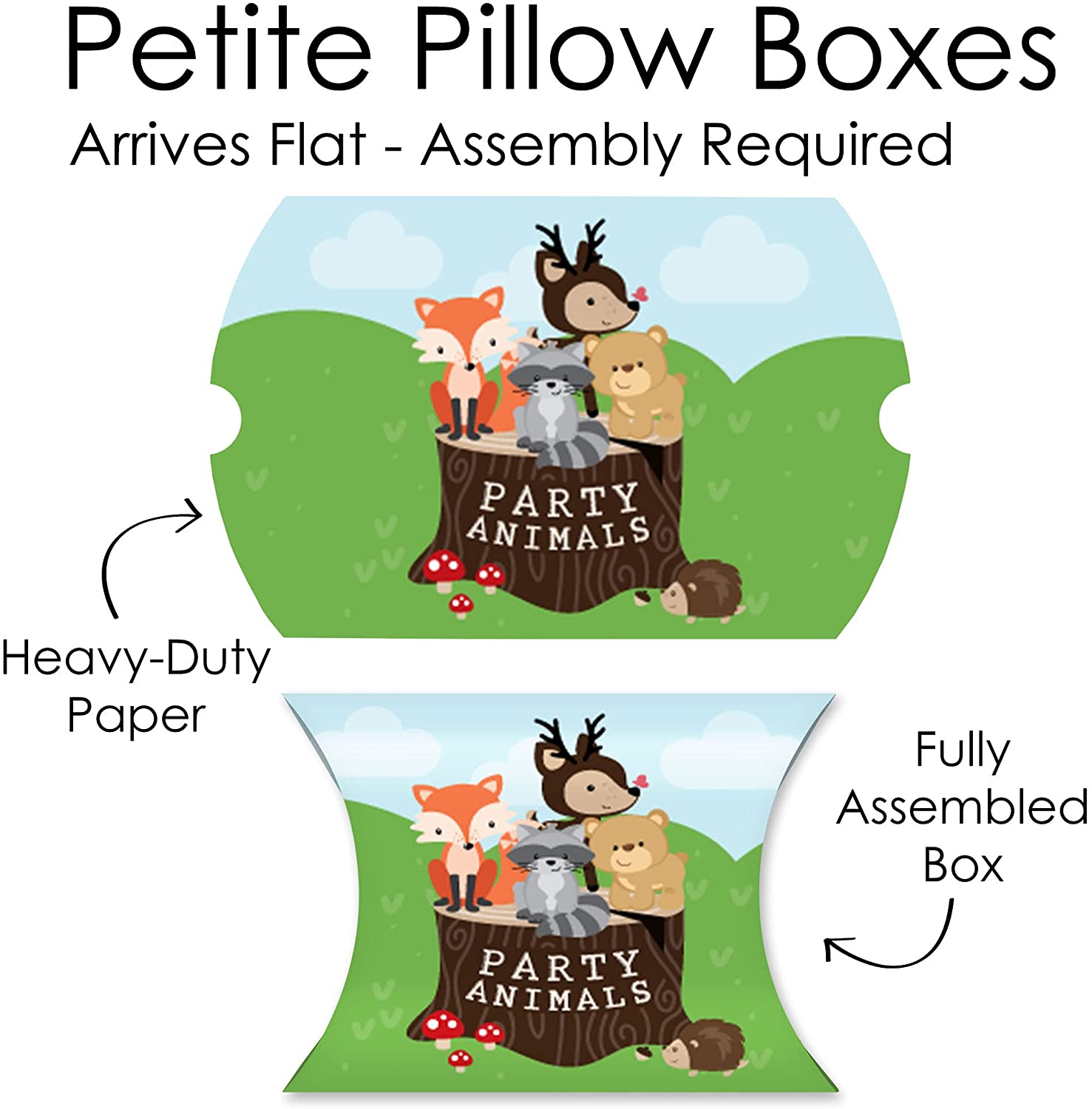 Woodland Creatures - Favor Gift Boxes - Baby Shower or Birthday Party Petite Pillow Boxes - Set of 20 is backordered and will ship as soon as it is back in stock.
