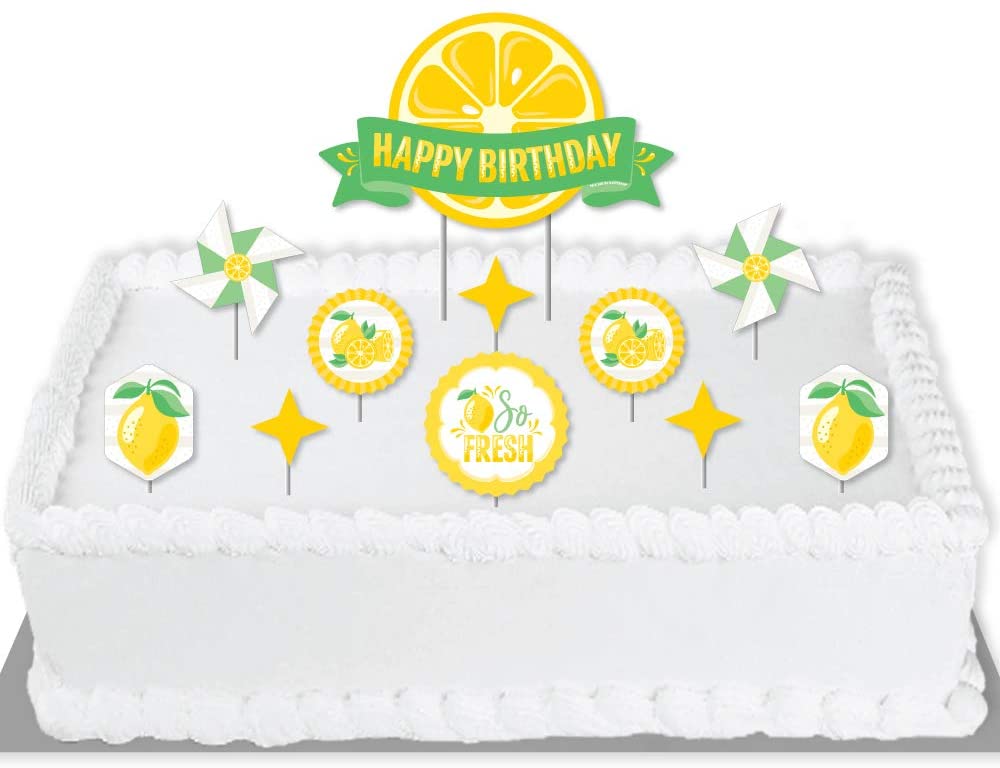 So Fresh - Lemon - Citrus Lemonade Birthday Party Cake Decorating Kit - Happy Birthday Cake Topper Set - 11 Pieces