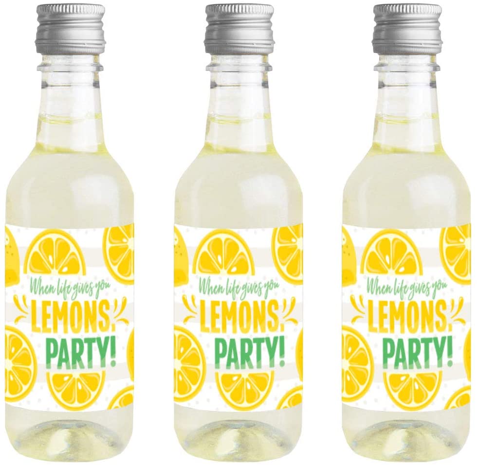 So Fresh - Lemon - Mini Wine and Champagne Bottle Label Stickers - Citrus Lemonade Party Favor Gift for Women and Men - Set of 16