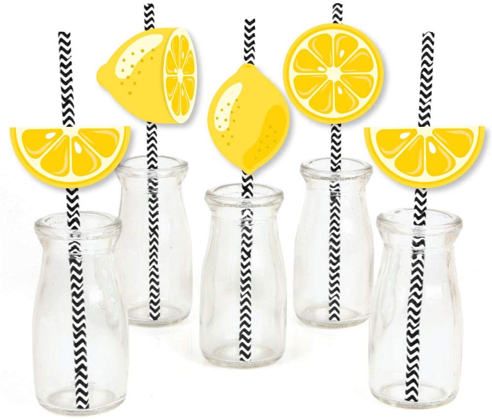 So Fresh - Lemon - Paper Straw Decor - Citrus Lemonade Party Striped Decorative Straws - Set of 24