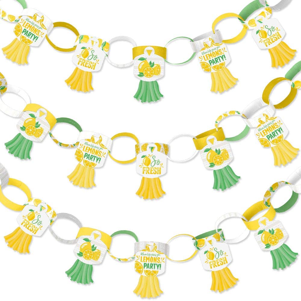 So Fresh - Lemon - 90 Chain Links and 30 Paper Tassels Decoration Kit - Citrus Lemonade Party Paper Chains Garland - 21 feet
