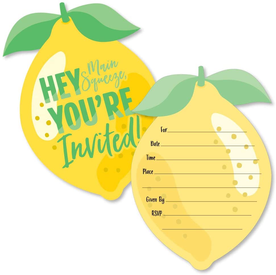 So Fresh - Lemon - Shaped Fill-In Invitations - Citrus Lemonade Party Invitation Cards with Envelopes - Set of 12