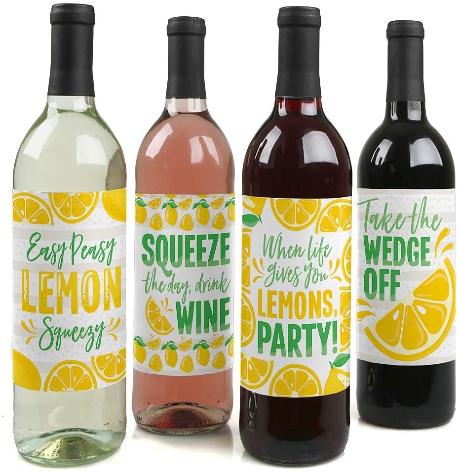 So Fresh - Lemon - Citrus Lemonade Party Decorations for Women and Men - Wine Bottle Label Stickers - Set of 4