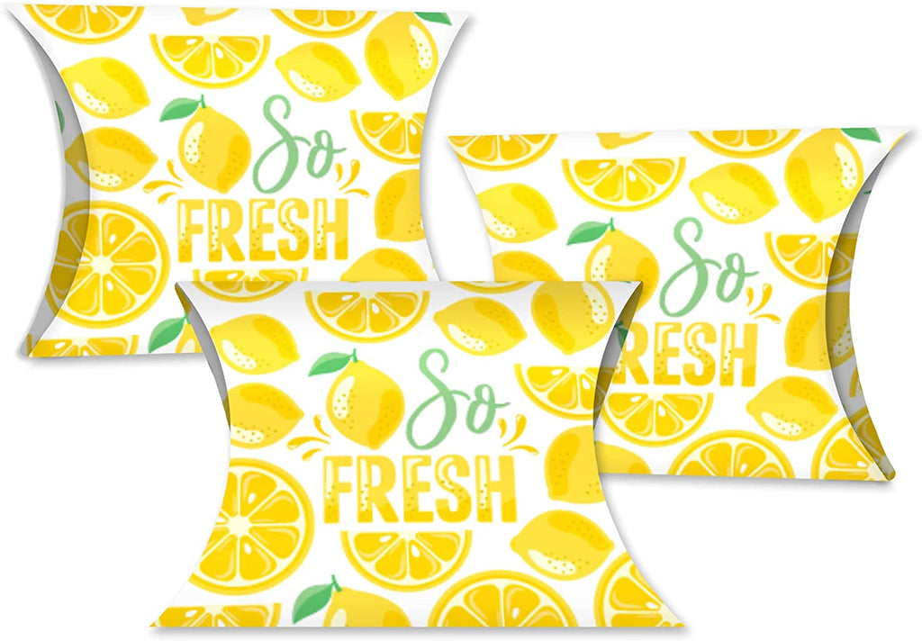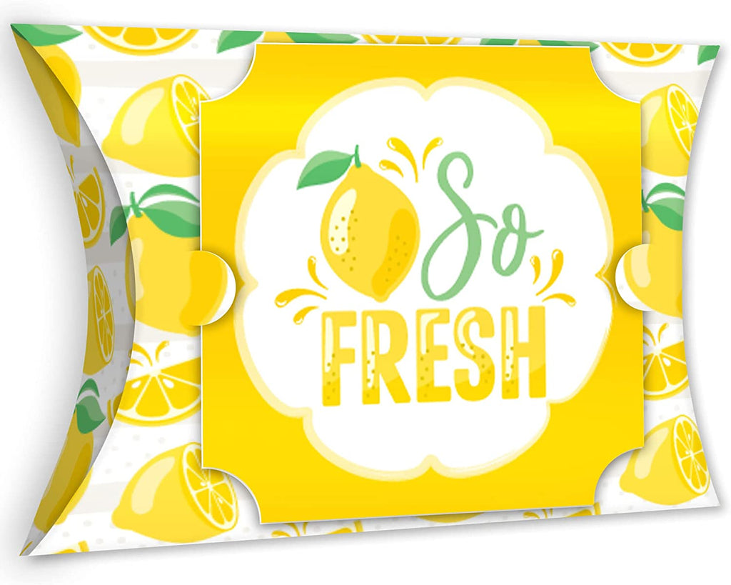 So Fresh - Lemon - Favor Gift Boxes - Citrus Lemonade Party Large Pillow Boxes - Set of 12