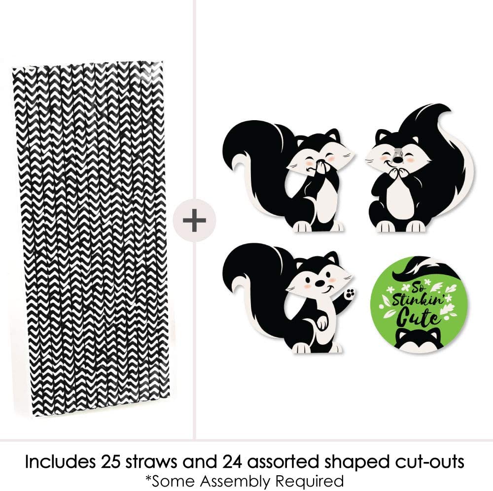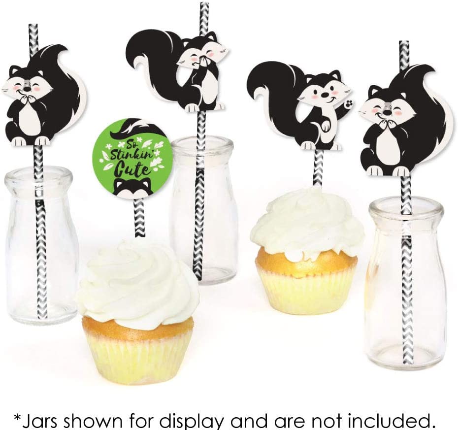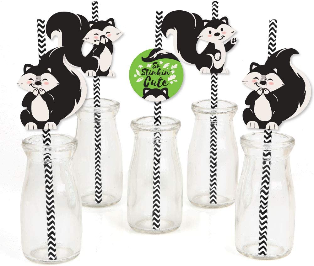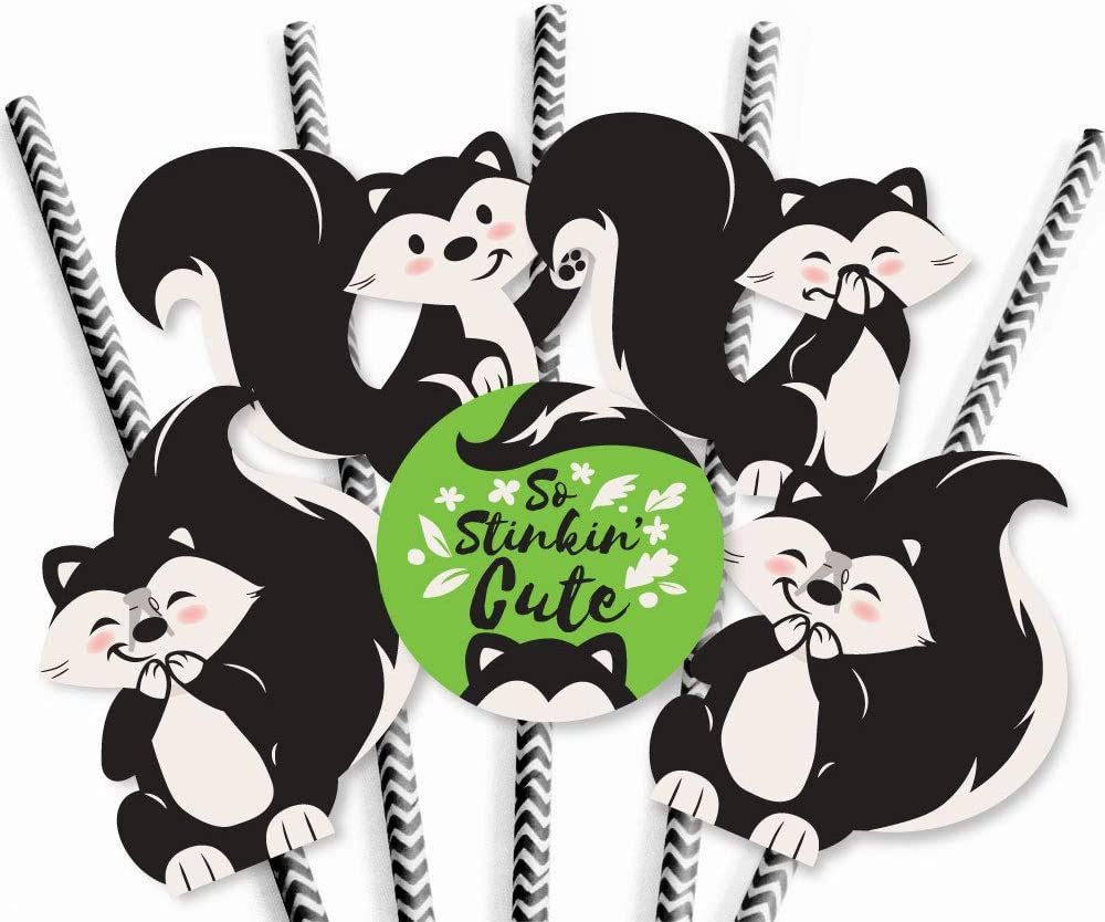 Little Stinker - Paper Straw Decor - Woodland Skunk Baby Shower or Birthday Party Striped Decorative Straws - Set of 24 is backordered and will ship as soon as it is back in stock.