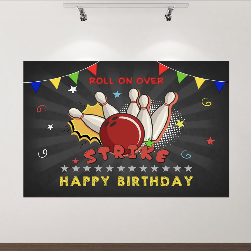 Custom Bowling Theme Birthday Poster Backdrop 60x40 Inch