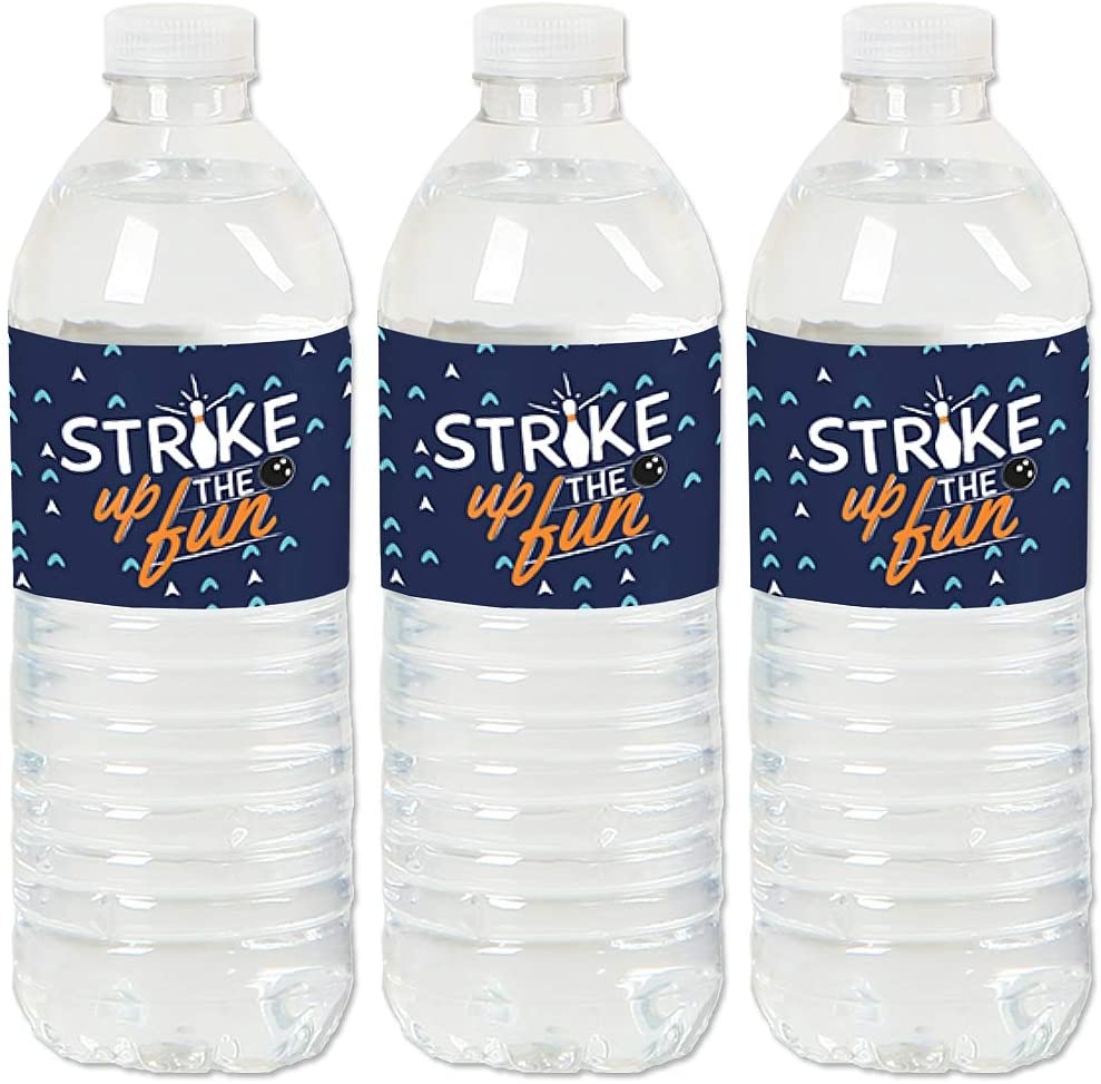 Strike Up the Fun - Bowling - Birthday Party or Baby Shower Water Bottle Sticker Labels - Set of 20