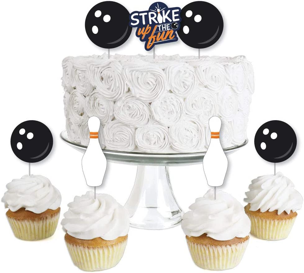 Strike Up the Fun - Bowling - Dessert Cupcake Toppers - Birthday Party or Baby Shower Clear Treat Picks - Set of 24